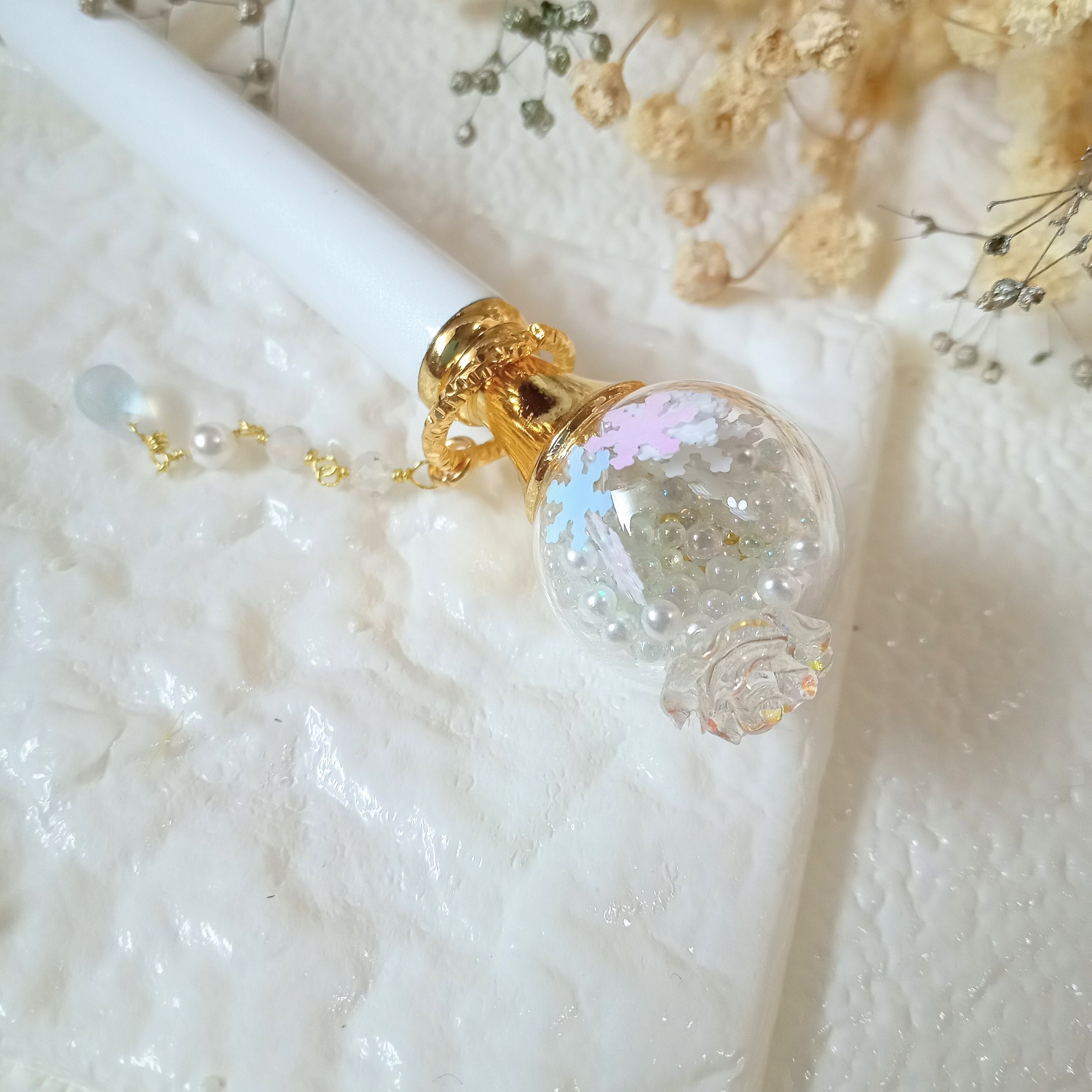 ガラスドームボールペン 繰り出し式 天然石 パワーストーン 可愛い プレゼント 贈り物 ホワイト 白 雪の結晶 ゴールド 冬