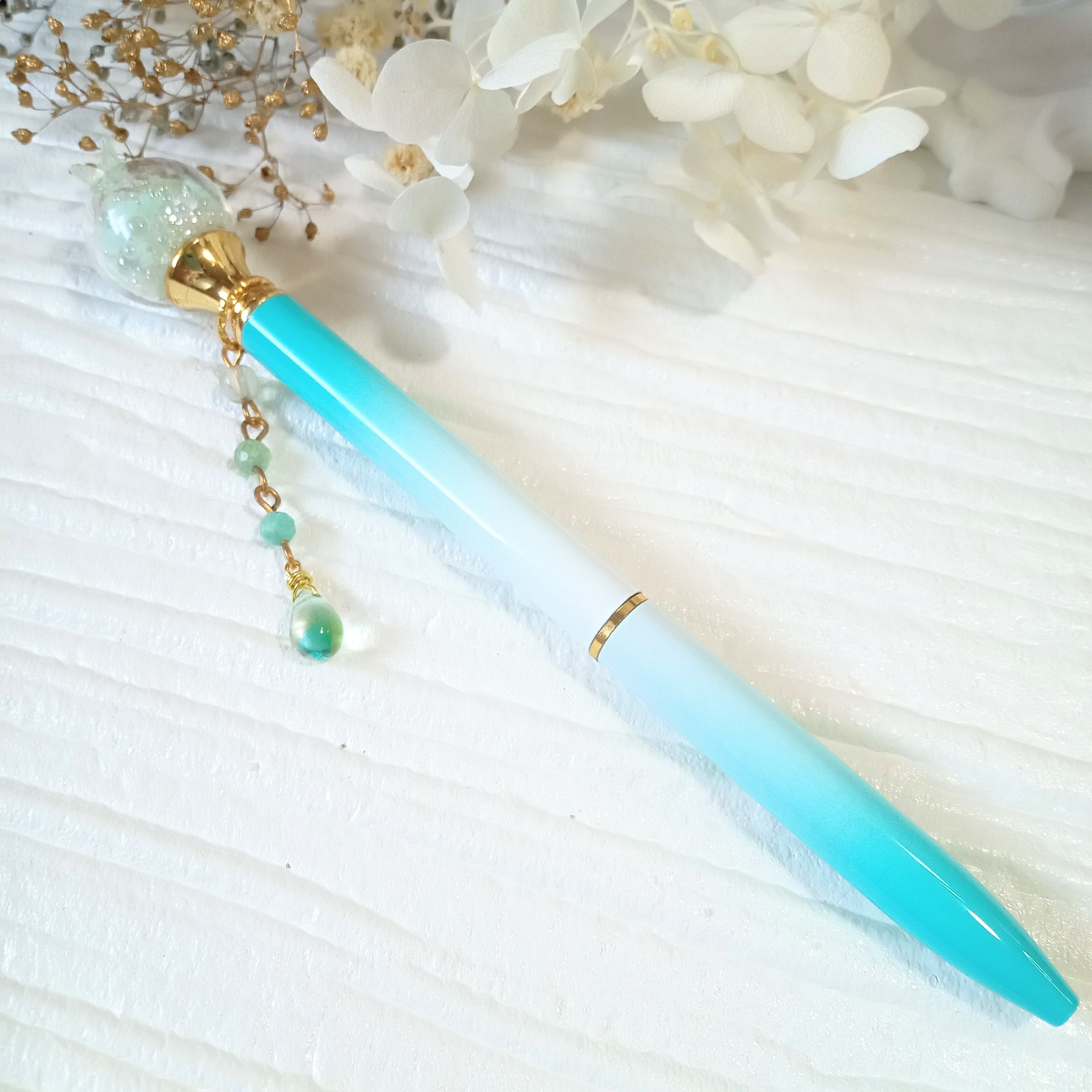 ガラスドームボールペン 繰り出し式 天然石 パワーストーン 可愛い おしゃれ プレゼント 贈り物 緑 グリーン グラデーション ゴールド 花 フラワー 蝶 バタフライ