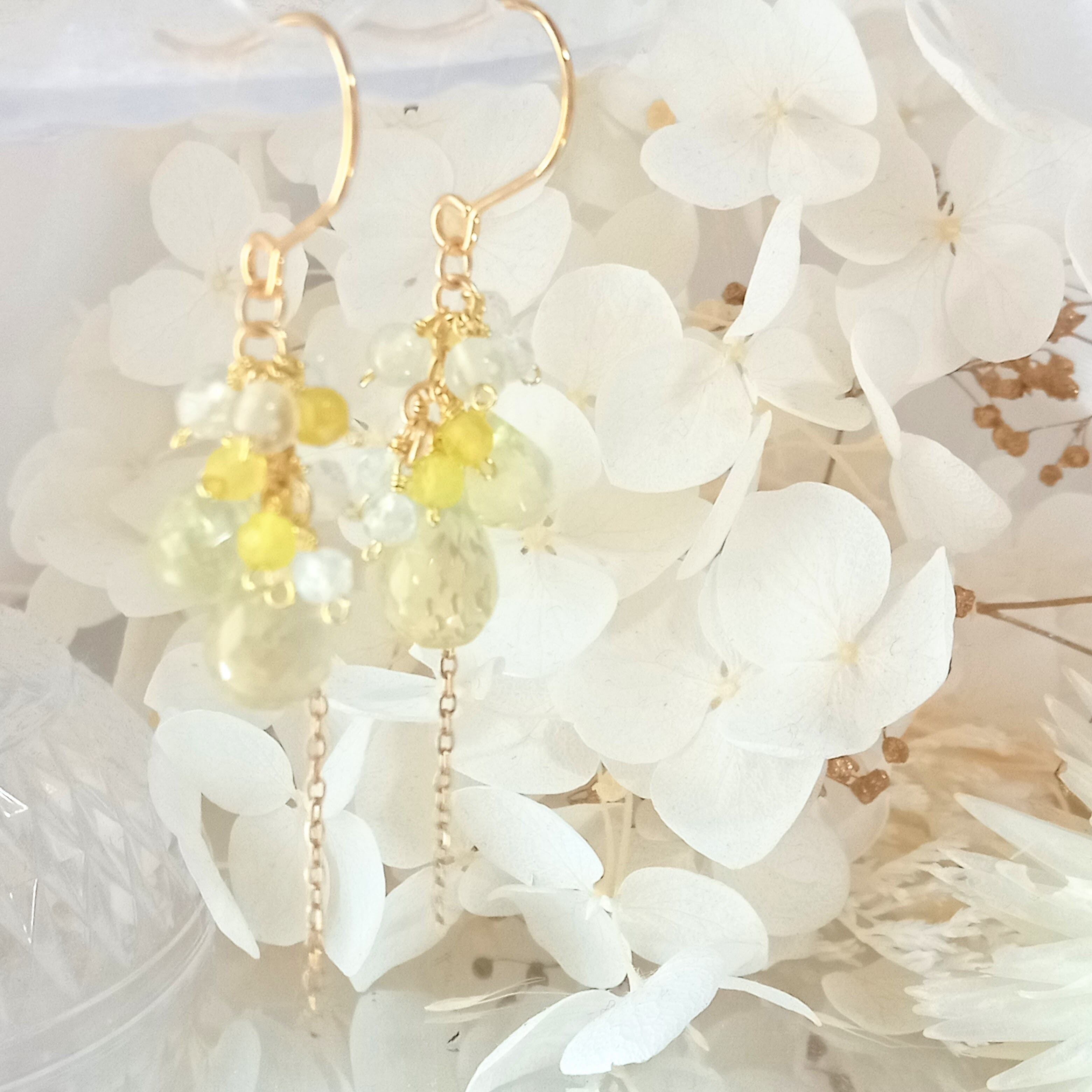 ★檸檬★gemstone accessory 天然石ピアス 天然石イヤリング アレルギー対応 華奢 ハンドメイド プレゼント 黄色 イエロー ゴールド