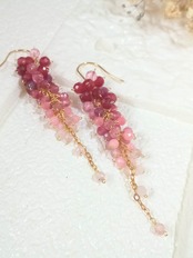 ルビーの真紅から淡いピンクのグラデーションが綺麗なロングピアスです。