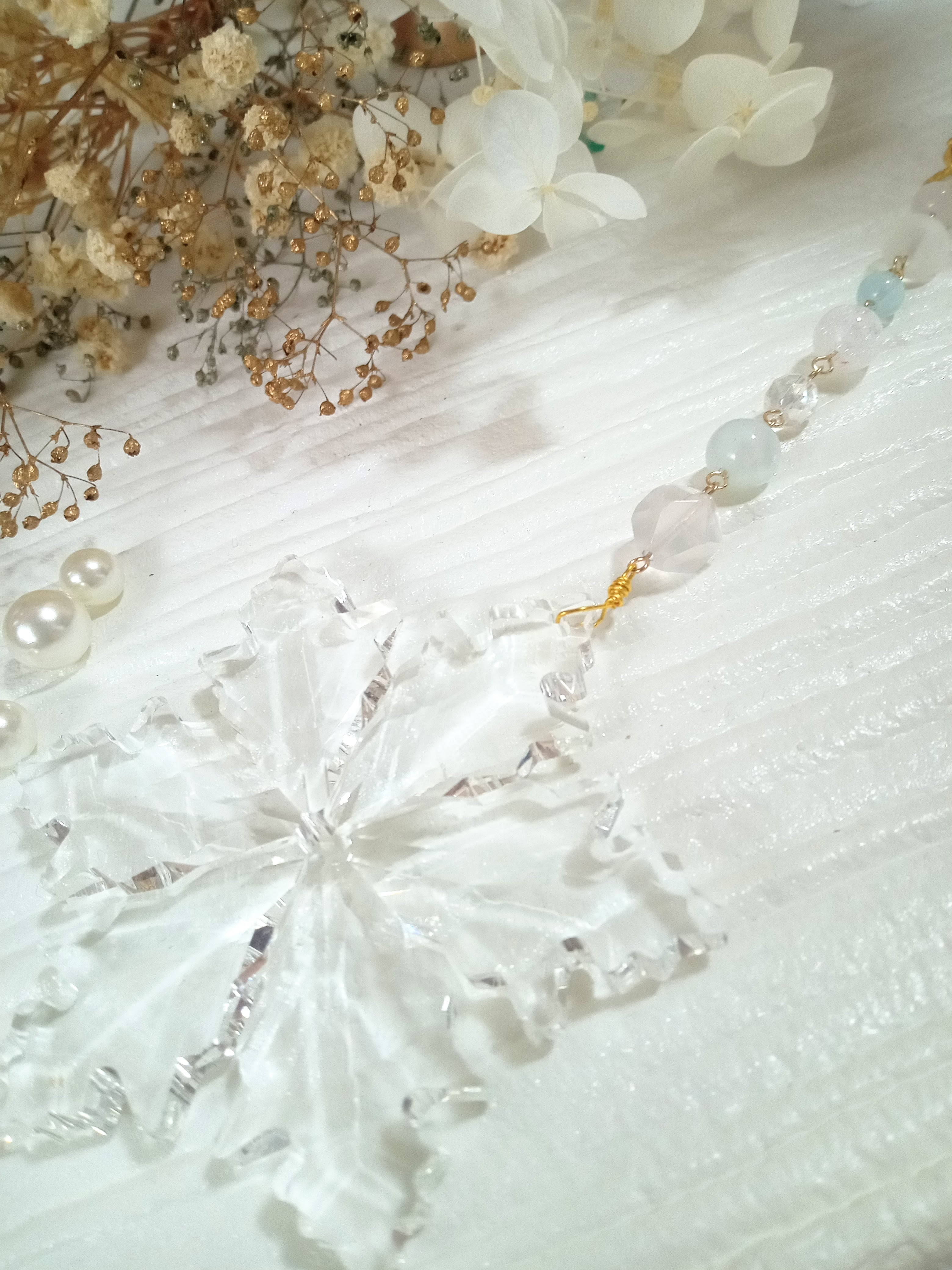 雪の結晶 サンキャッチャー キラキラ 天然石 パワーストーン インテリア ハンドメイド プレゼント 贈り物 冬 ミニサイズ