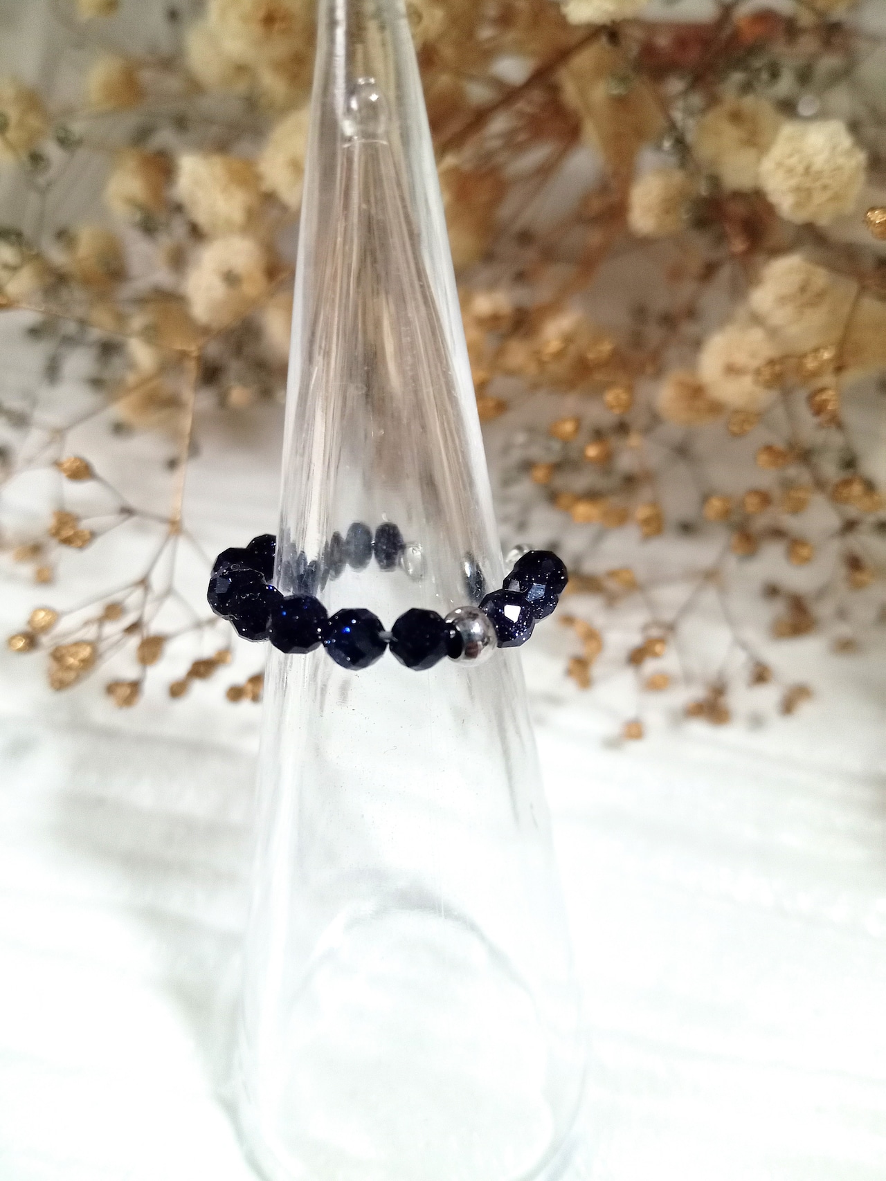 カスタムイヤーカフ&リング 天然石 パワーストーン 指輪 重ね付け シンプル フリーサイズ アレルギー対応 プレゼント 贈り物 シルバー ダークブルー