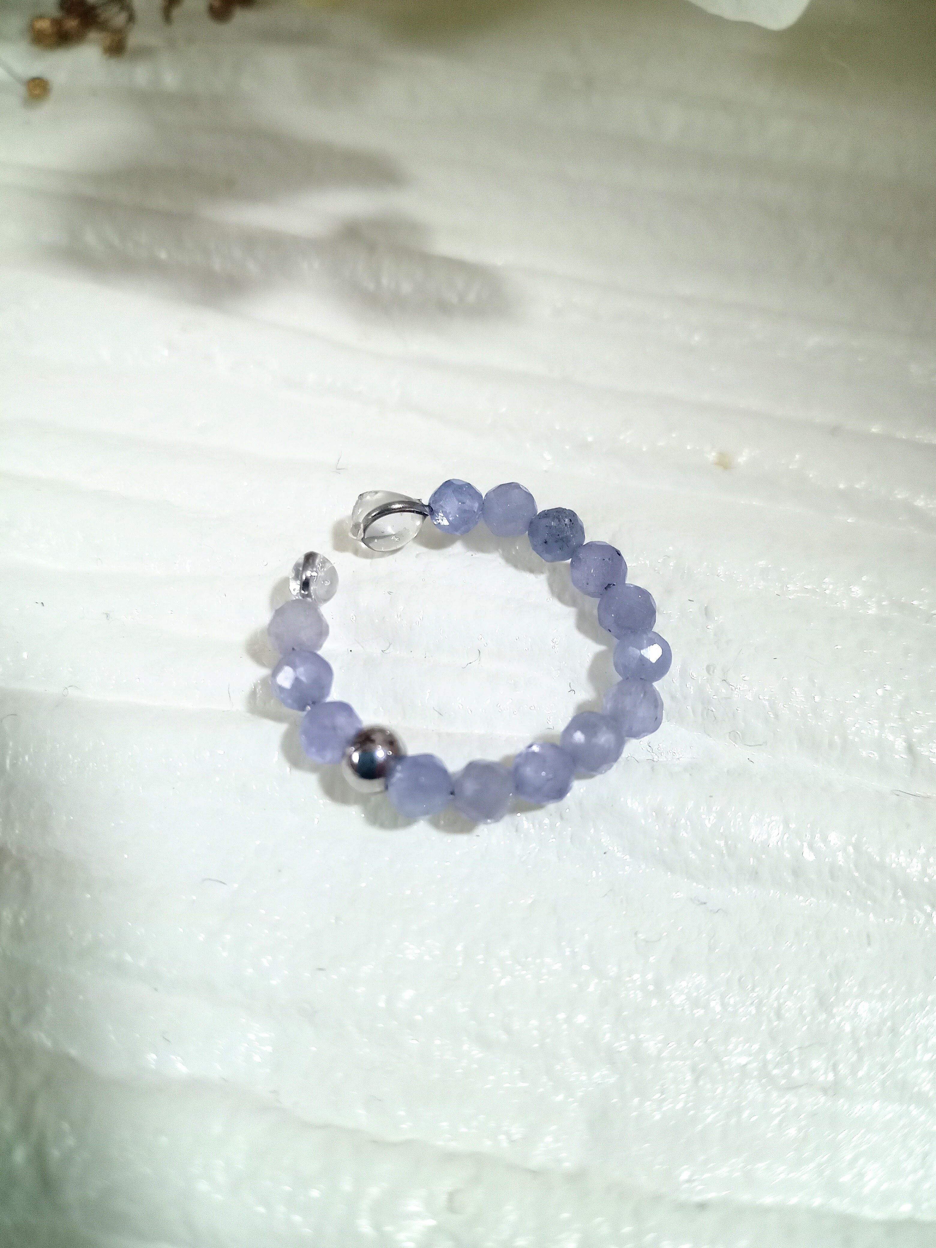 カスタムイヤーカフ&リング 天然石 パワーストーン 指輪 重ね付け シンプル フリーサイズ アレルギー対応 プレゼント 贈り物 シルバー ブルー