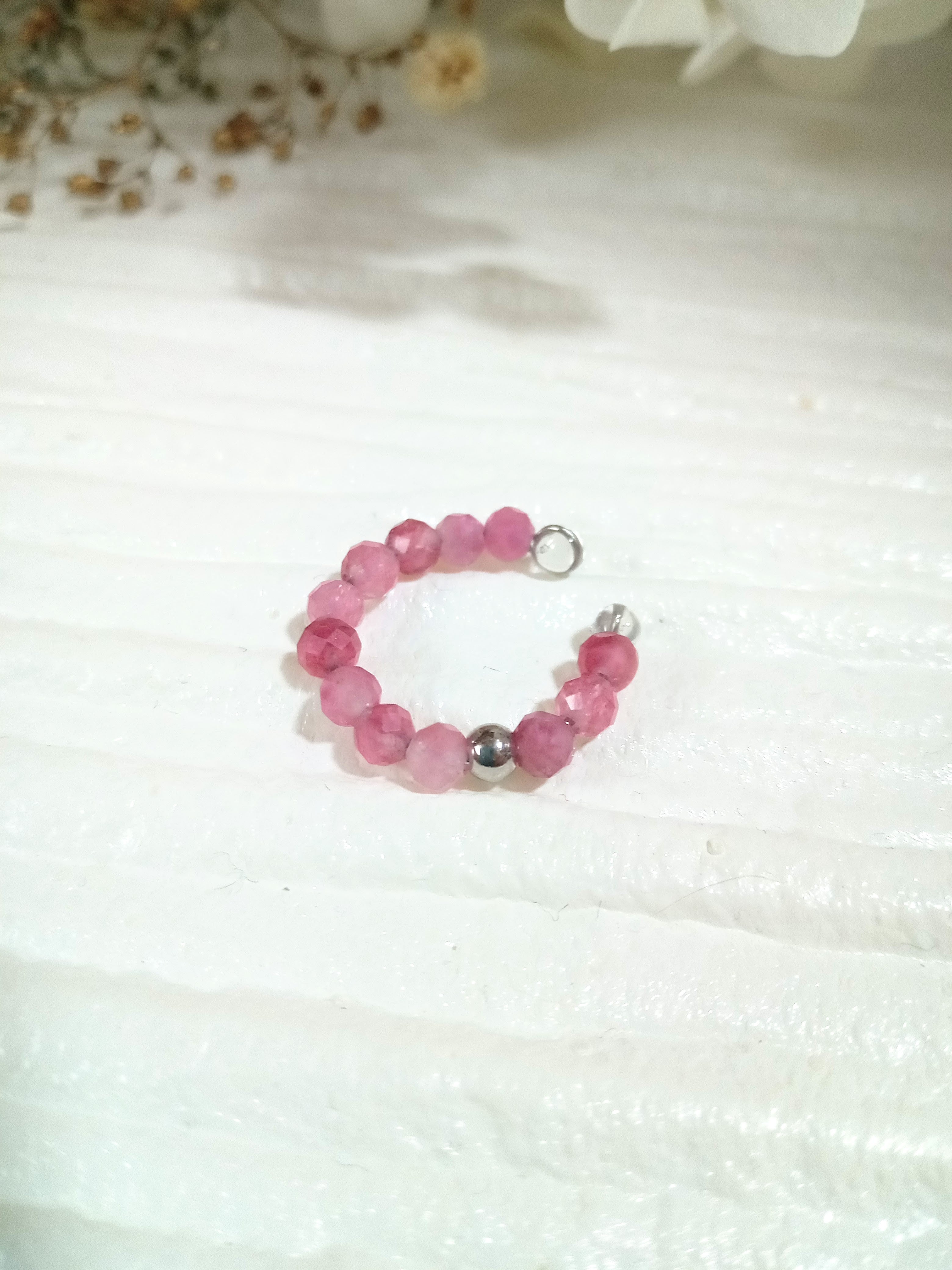 カスタムイヤーカフ&リング 天然石 パワーストーン 指輪 重ね付け シンプル フリーサイズ アレルギー対応 プレゼント 贈り物 シルバー ピンク