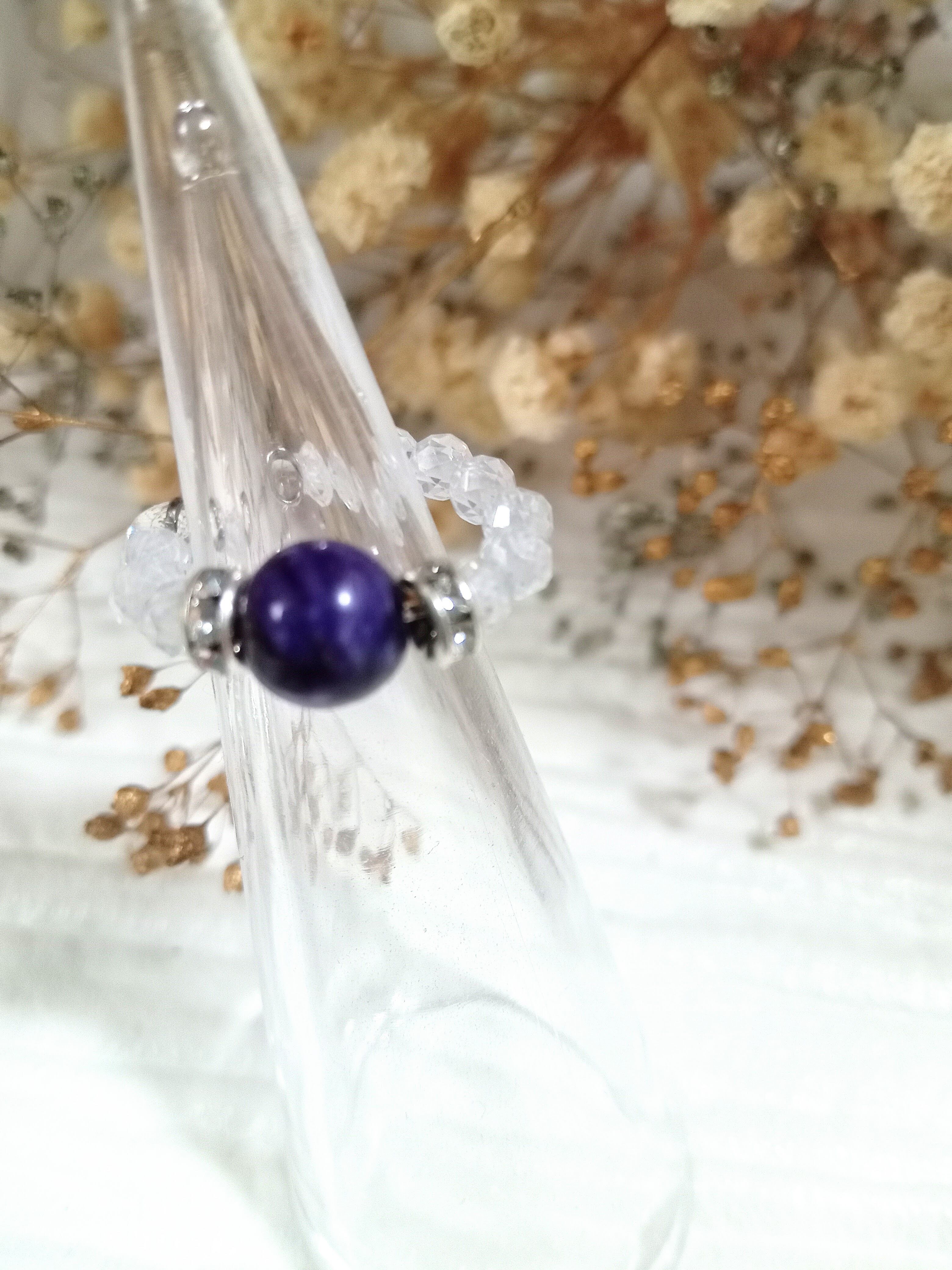 カスタムイヤーカフ&リング 天然石 パワーストーン 指輪 重ね付け シンプル フリーサイズ アレルギー対応 プレゼント 贈り物 シルバー パープル