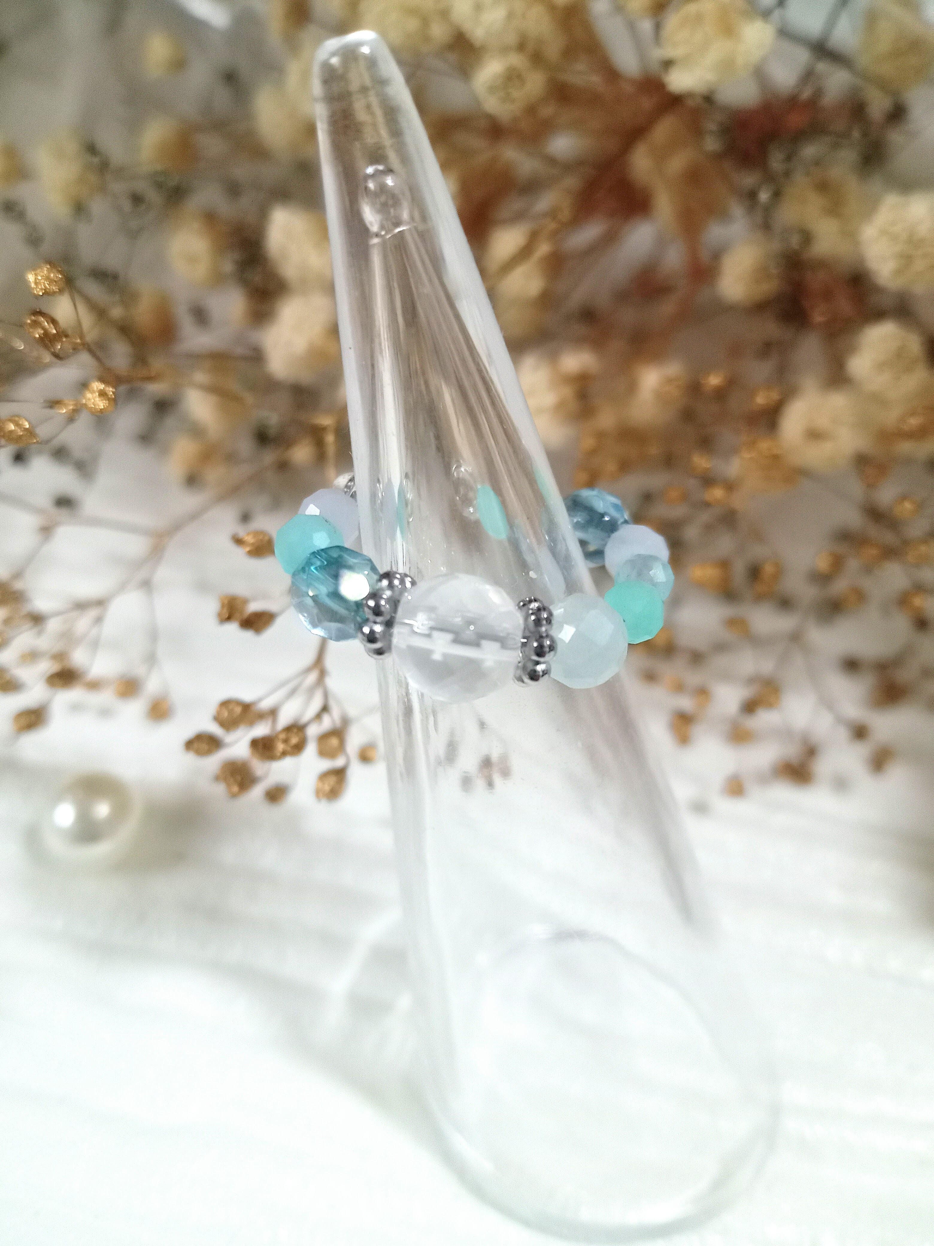 カスタムイヤーカフ&リング 天然石 パワーストーン 指輪 重ね付け シンプル フリーサイズ アレルギー対応 プレゼント 贈り物 シルバー ブルー