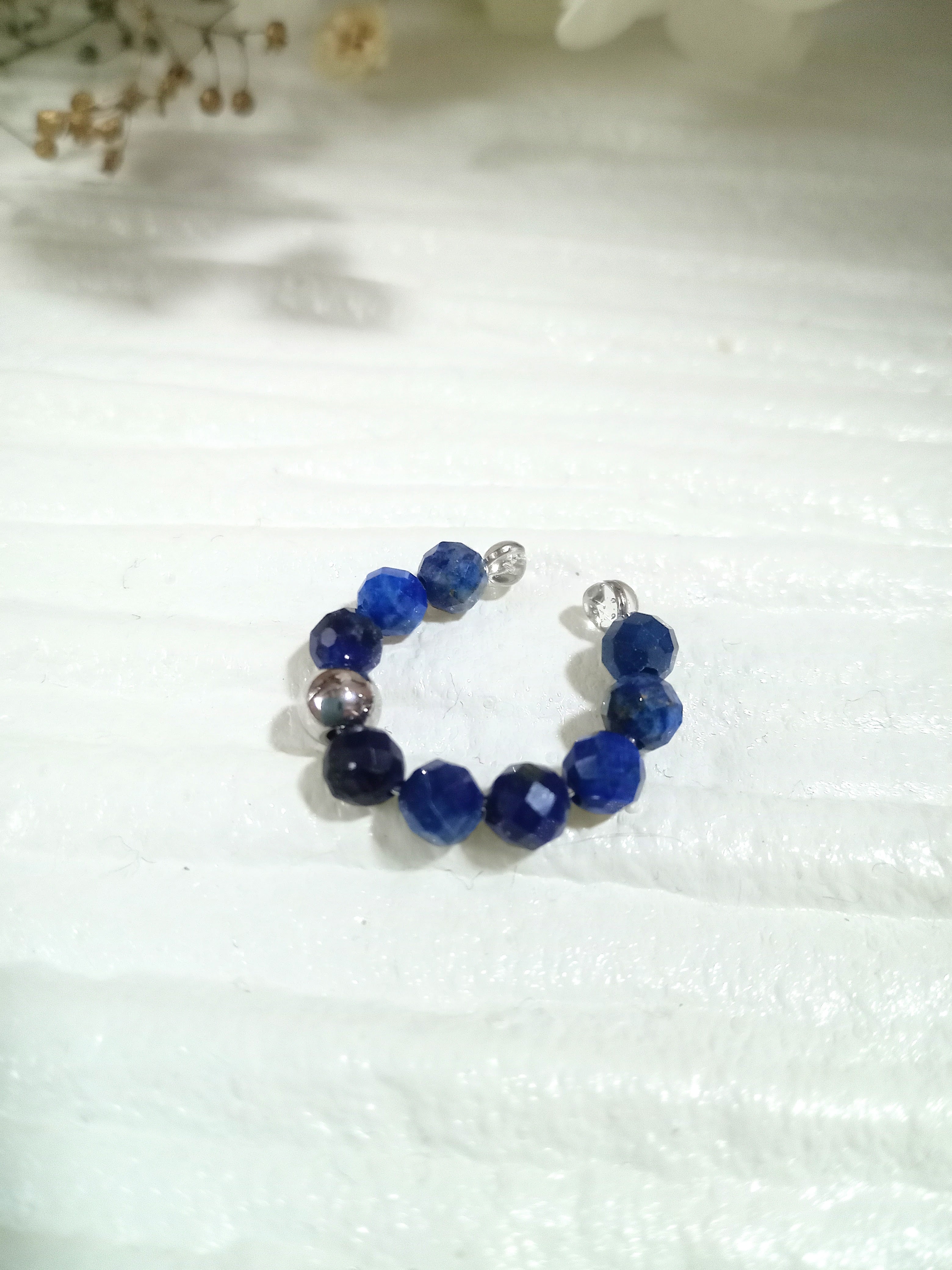 カスタムイヤーカフ&リング 天然石 パワーストーン 指輪 重ね付け シンプル フリーサイズ アレルギー対応 プレゼント 贈り物 シルバー ブルー