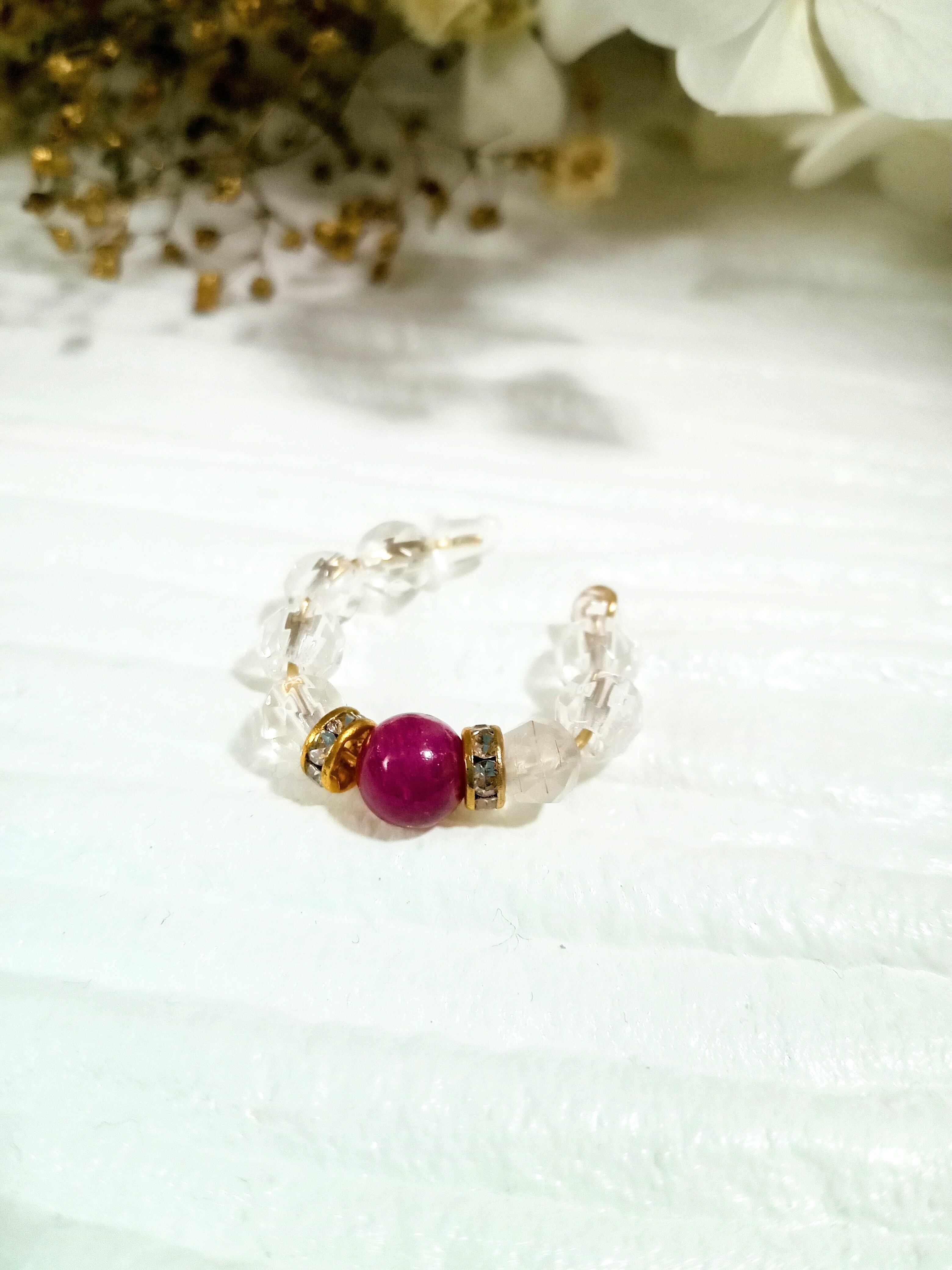 カスタムイヤーカフ&リング 天然石 パワーストーン 指輪 重ね付け シンプル フリーサイズ アレルギー対応 プレゼント 贈り物 ゴールド クリア レッド ピンク