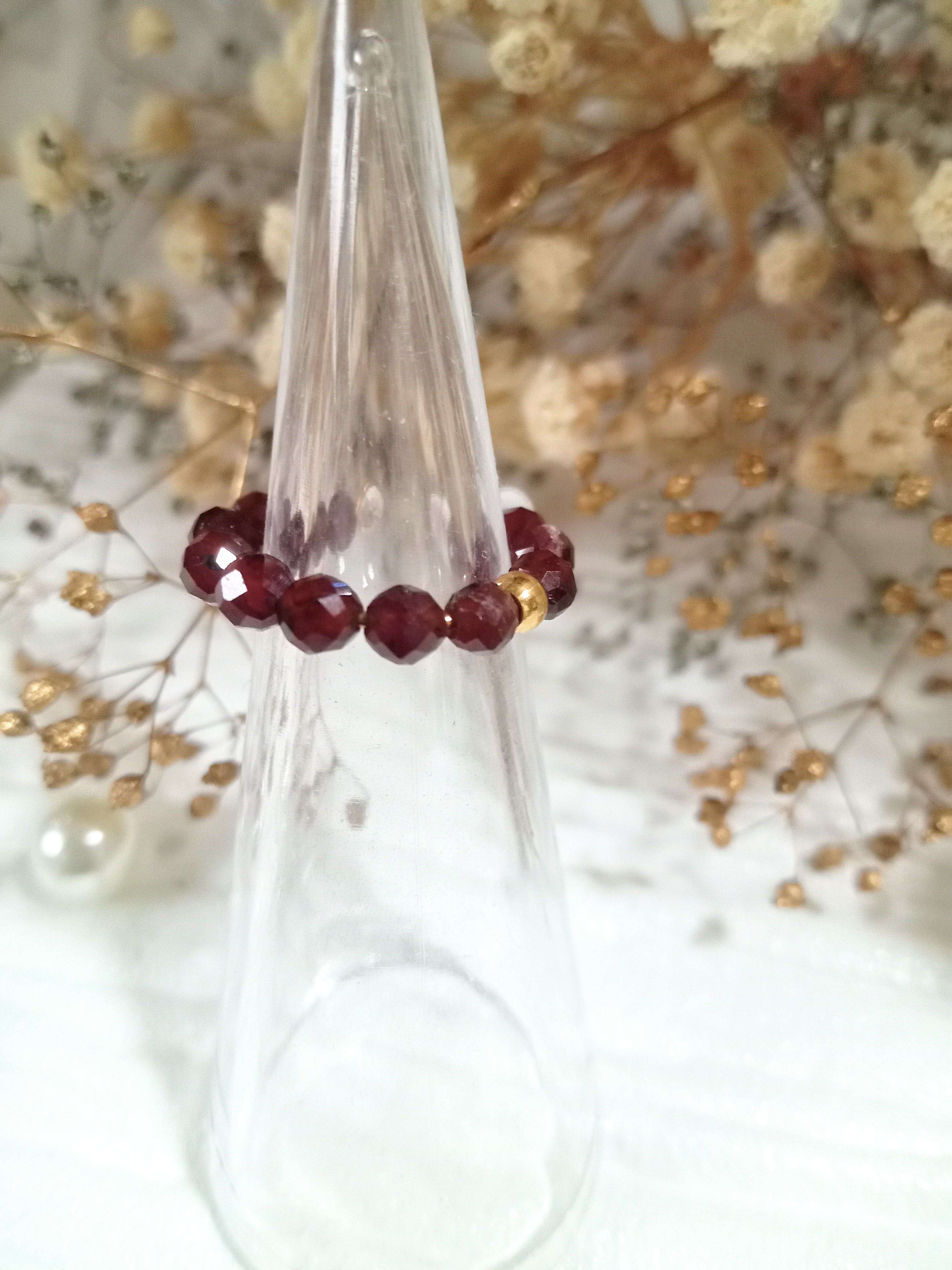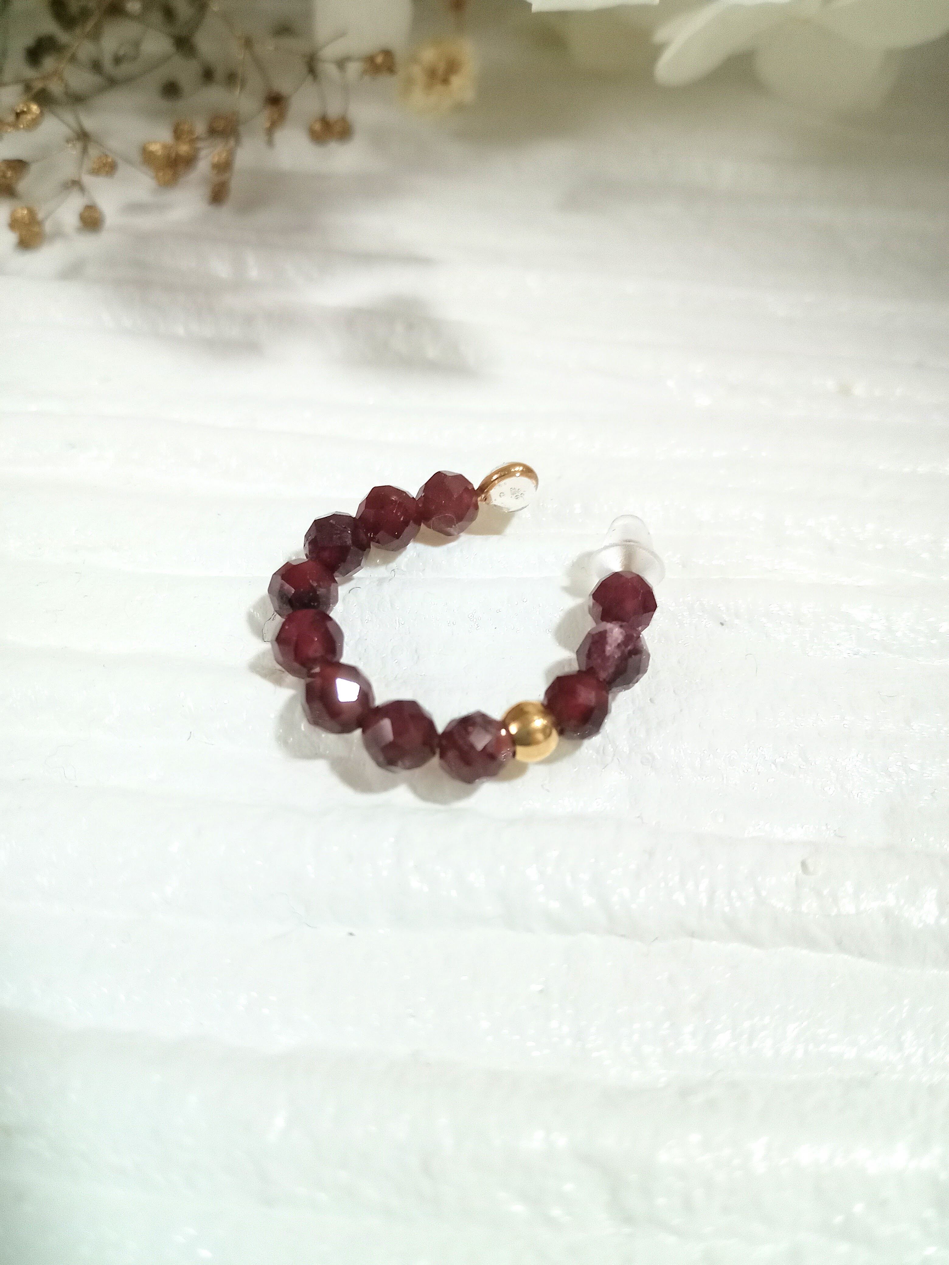 カスタムイヤーカフ&リング 天然石 パワーストーン 指輪 重ね付け シンプル フリーサイズ アレルギー対応 プレゼント 贈り物 ゴールド レッド