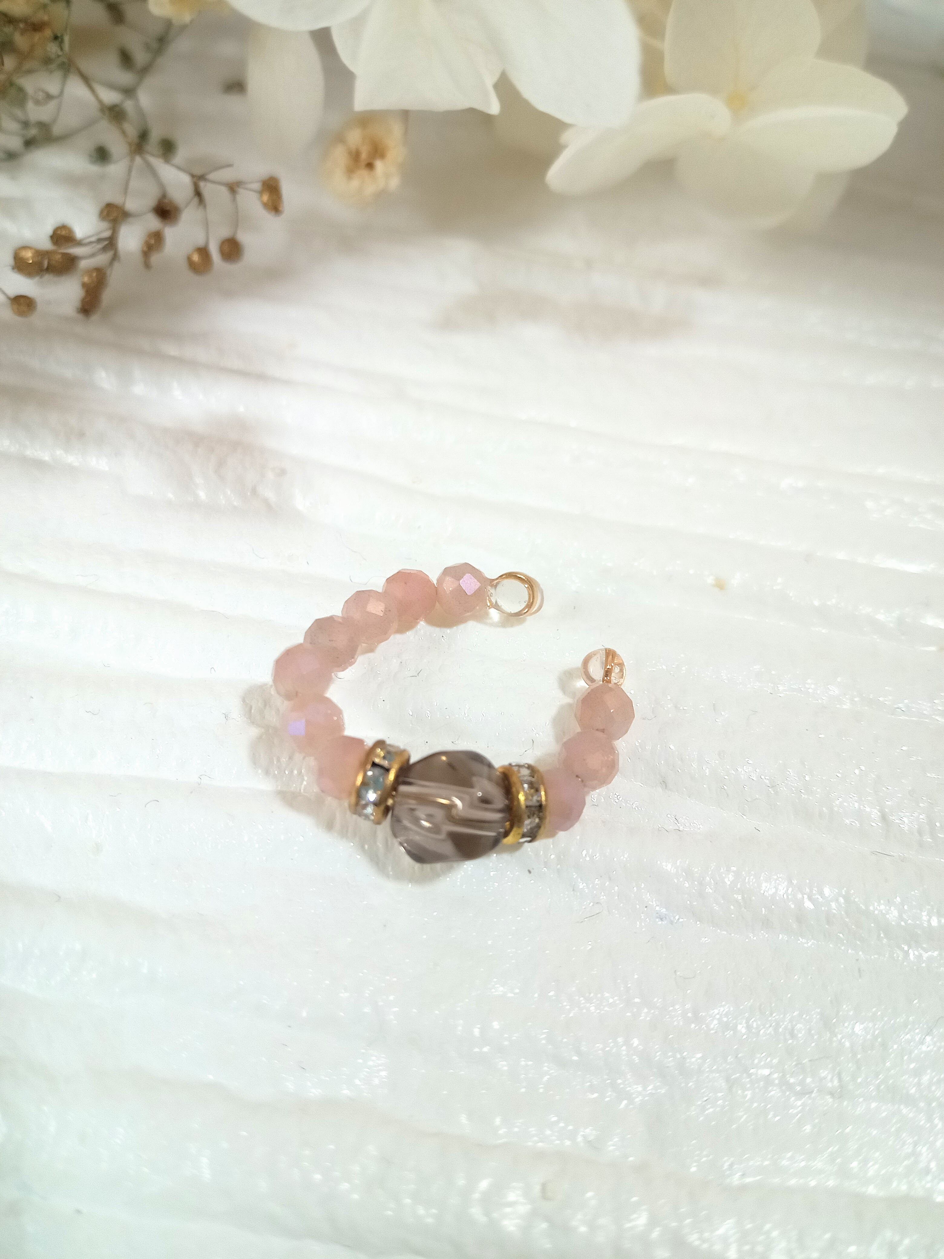 カスタムイヤーカフ&リング 天然石 パワーストーン 指輪 重ね付け シンプル フリーサイズ アレルギー対応 プレゼント 贈り物 ゴールド オレンジ ブラウン