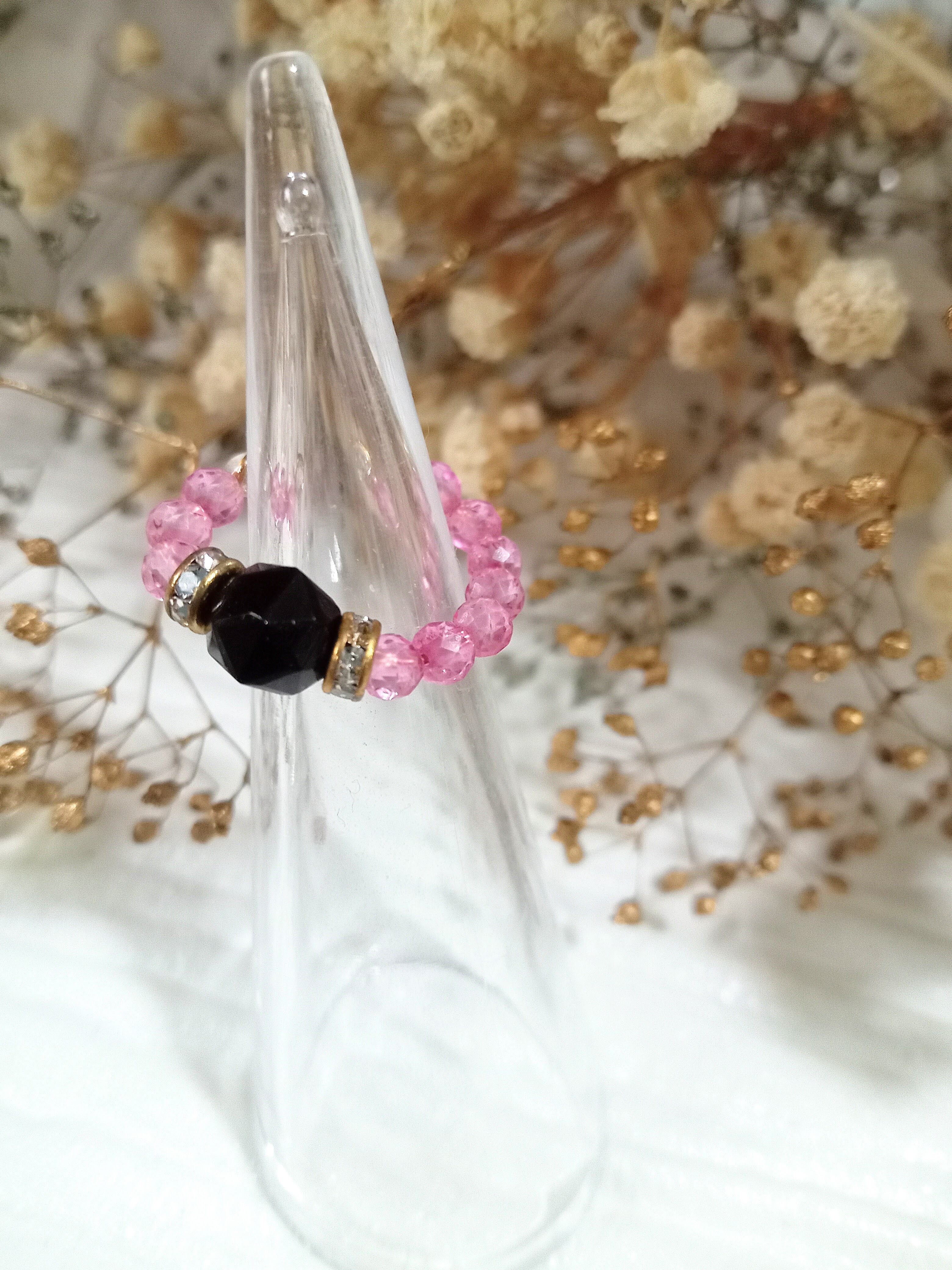 カスタムイヤーカフ&リング 天然石 パワーストーン 指輪 重ね付け シンプル フリーサイズ アレルギー対応 プレゼント 贈り物 ゴールド ピンク ブラック