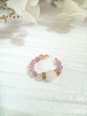 カスタムイヤーカフ&リング 天然石 パワーストーン 指輪 重ね付け シンプル フリーサイズ アレルギー対応 プレゼント 贈り物 ゴールド ピンク