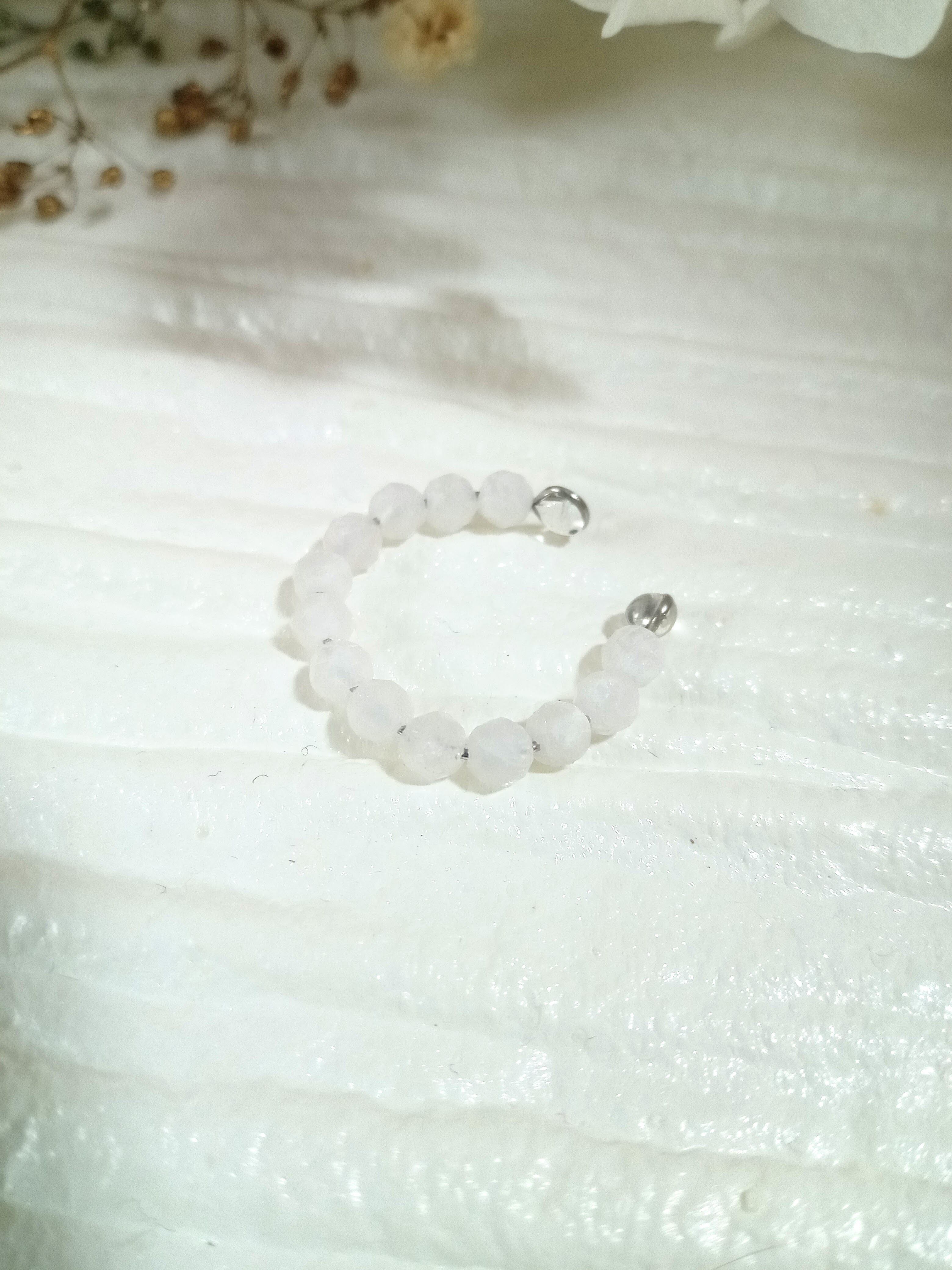 カスタムイヤーカフ&リング 天然石 パワーストーン 指輪 重ね付け シンプル フリーサイズ アレルギー対応 プレゼント 贈り物 シルバー ホワイト