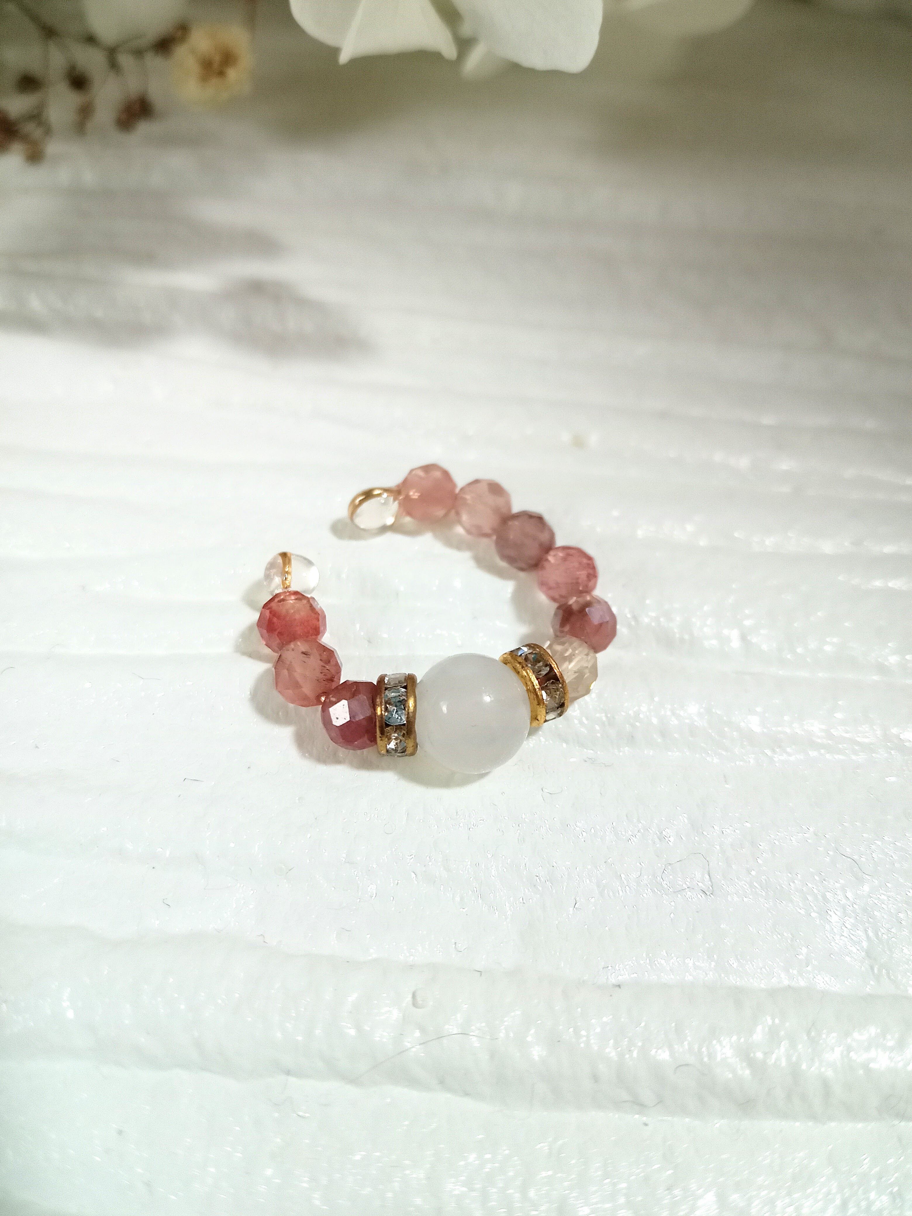 カスタムイヤーカフ&リング 天然石 パワーストーン 指輪 重ね付け シンプル フリーサイズ アレルギー対応 プレゼント 贈り物 ゴールド レッド ホワイト