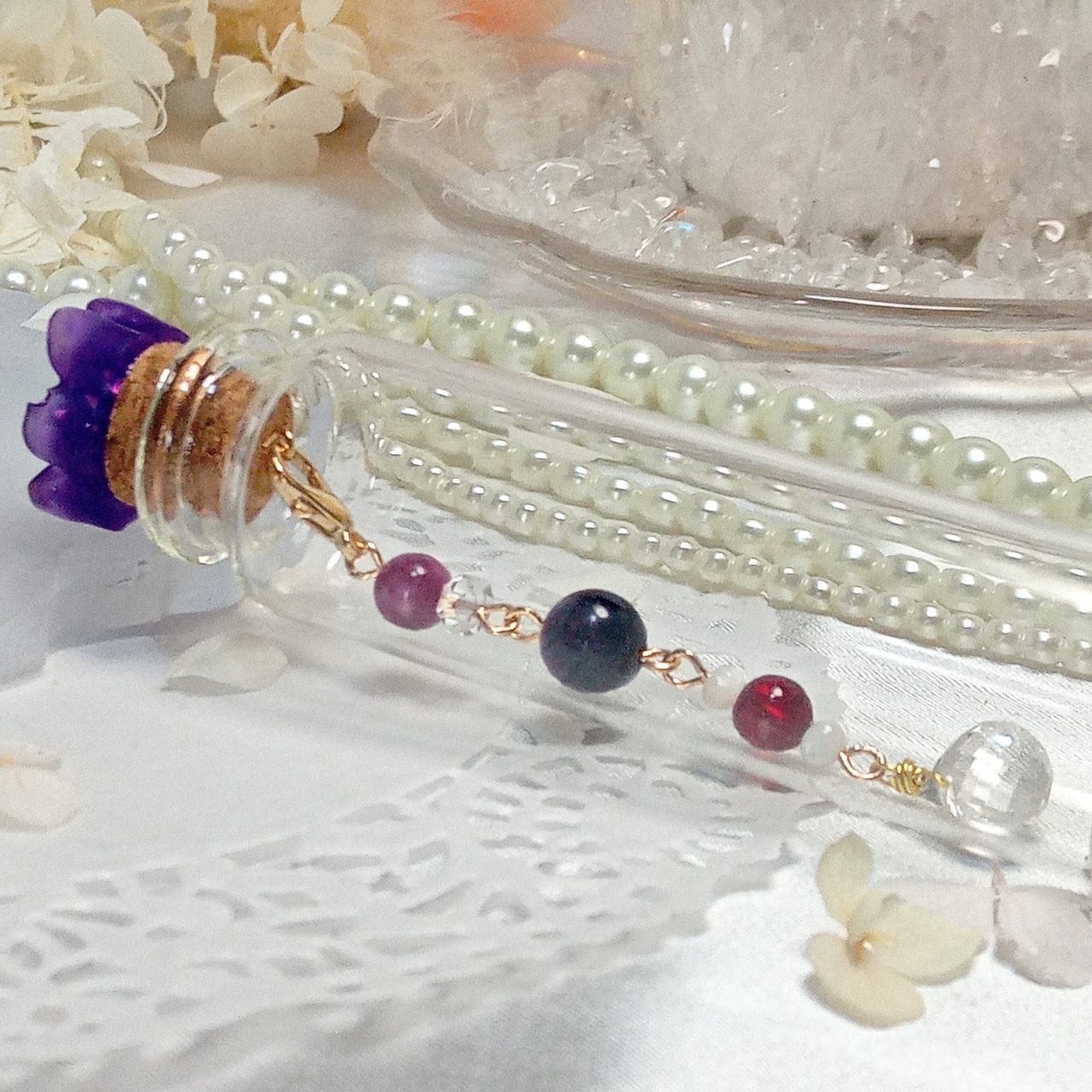 ・天然石は水、塩、日光に弱いものがありますので浄化はセージやクリスタル、月光浴をおすすめ致します。