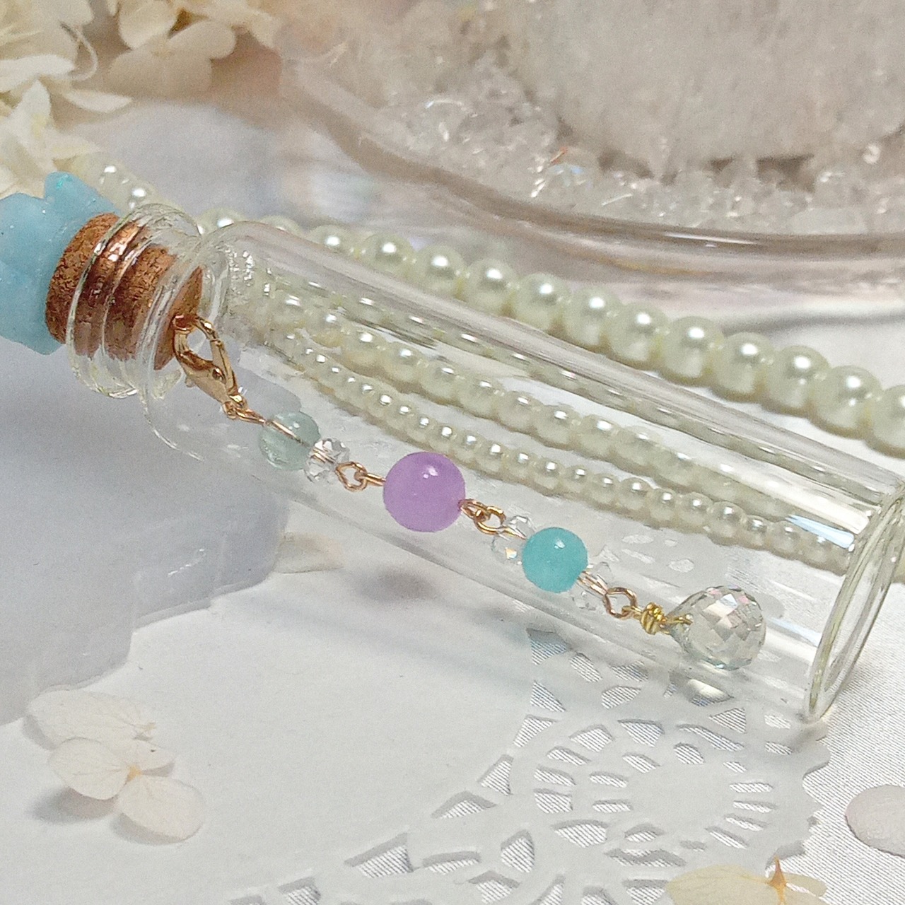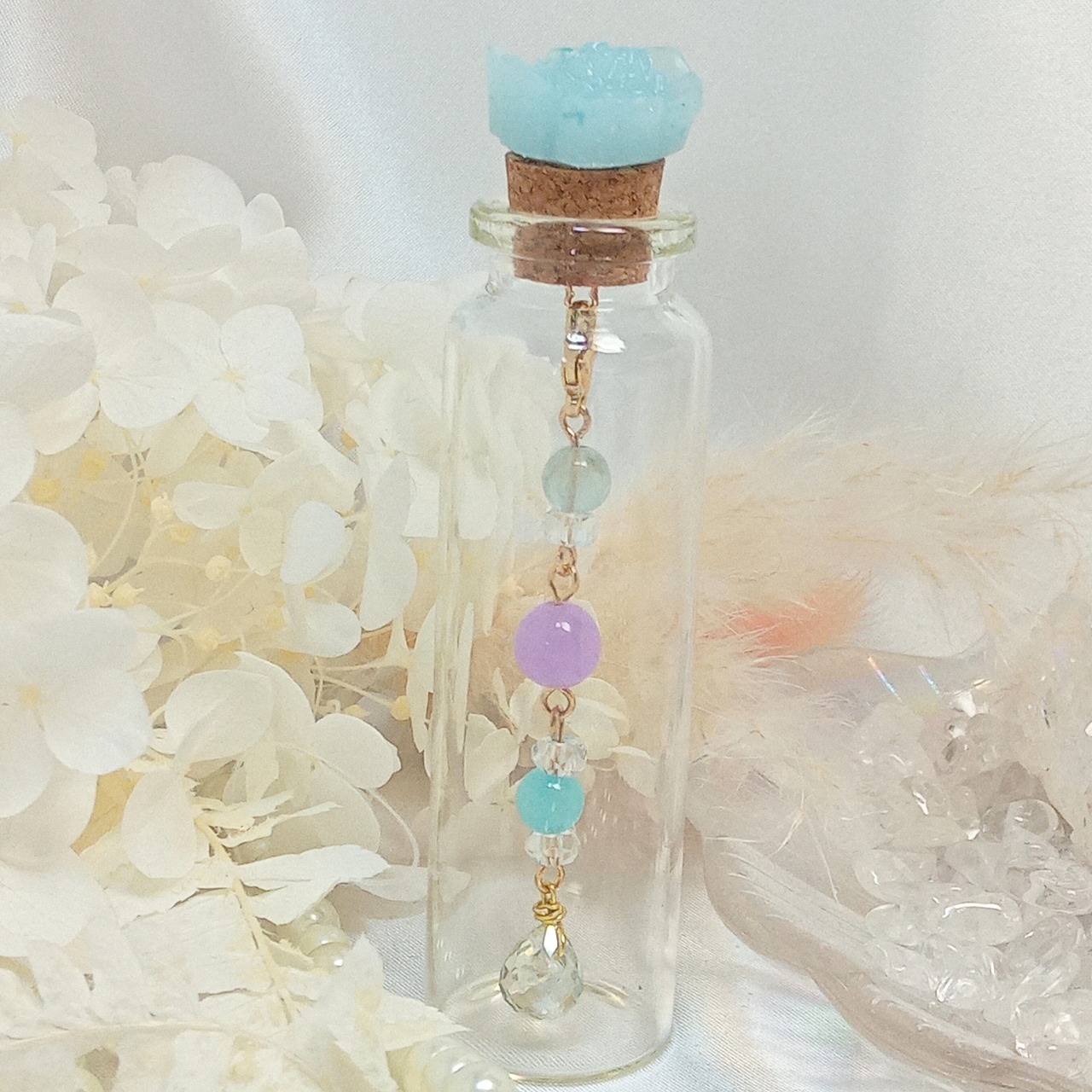 サンキャッチャー キラキラ 天然石 パワーストーン インテリア ハンドメイド プレゼント 贈り物 ミルキー 水色 置き型 可愛い おしゃれ ミニサイズ