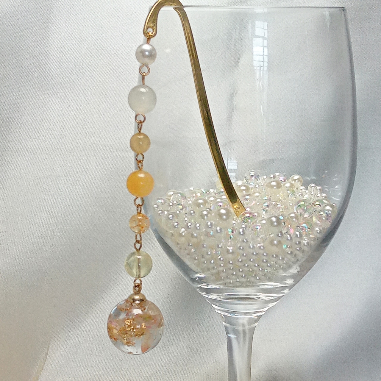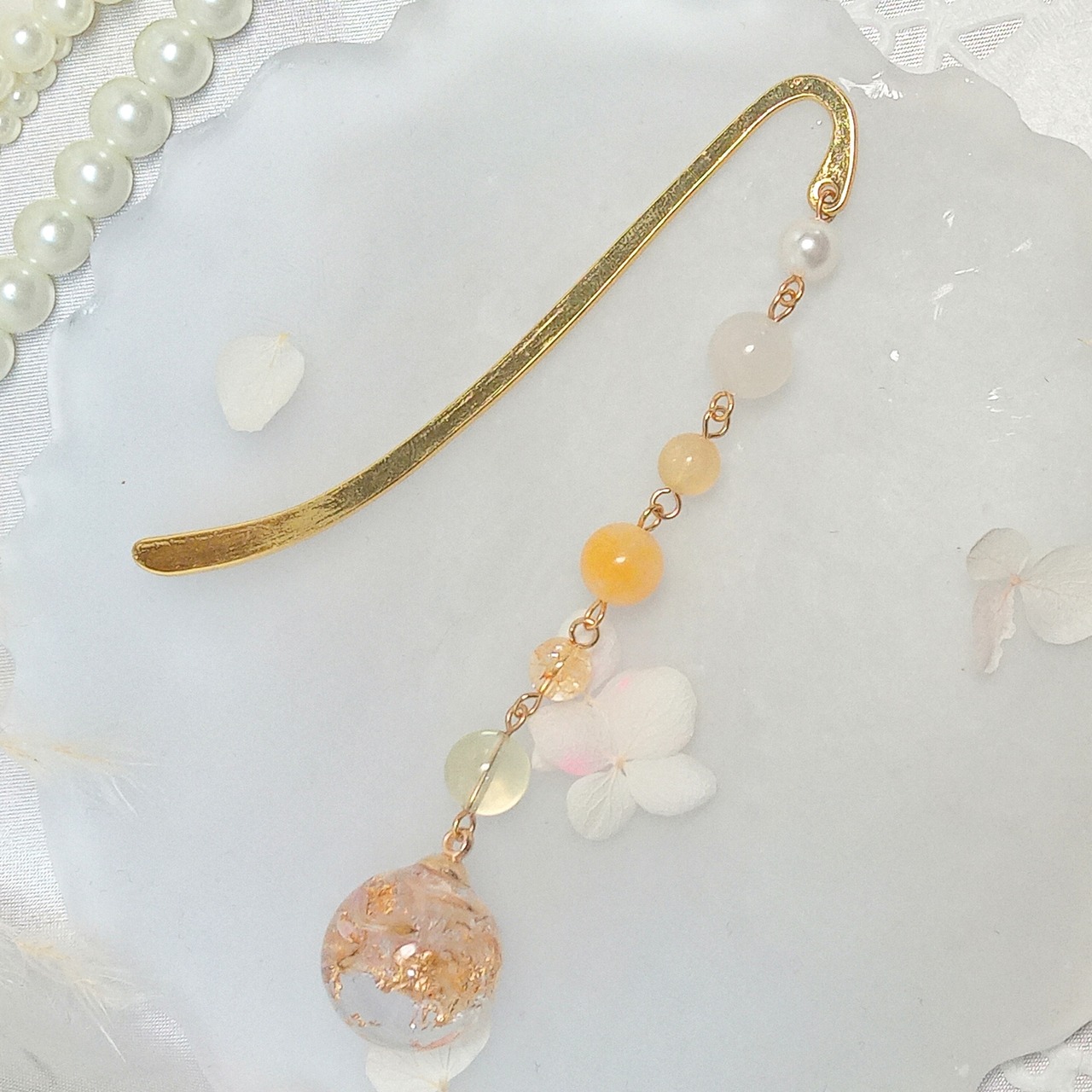 ブックマーカー かんざし 簪 帯飾り インテリア ハンドメイド 天然石 アクセサリー パワーストーン プレゼント 可愛い おしゃれ イエロー 金箔 ローズ