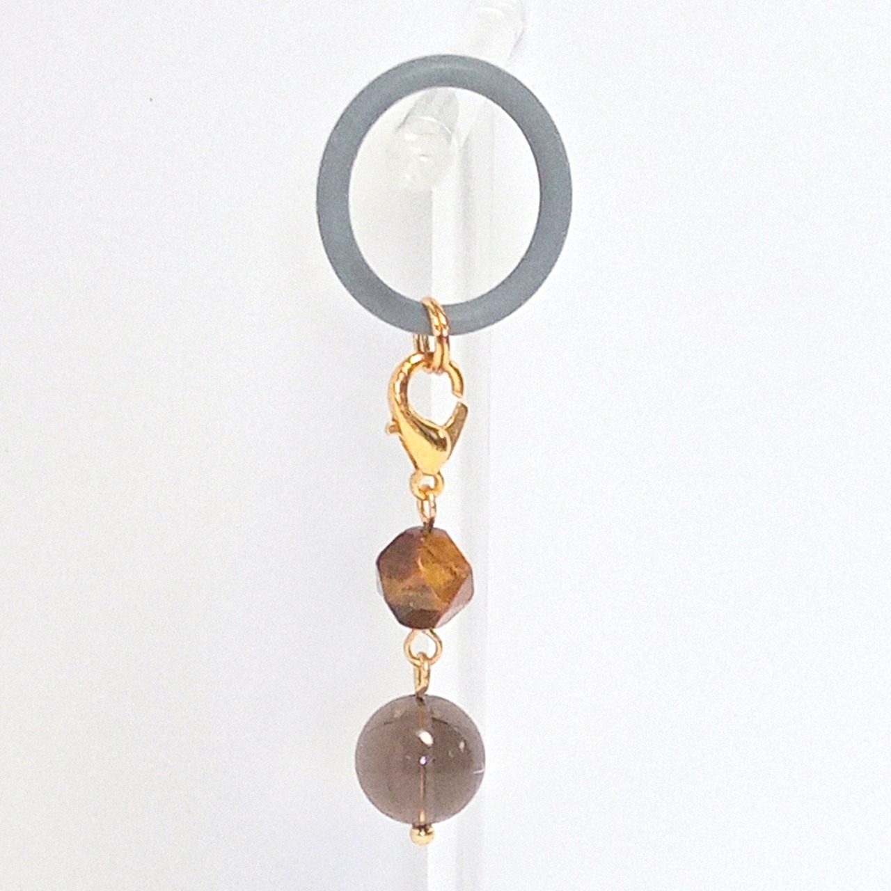 ★黒雨★アンブレラマーカー ペットボトルマーカー 傘 杖 目印 転倒防止 紛失防止 天然石 パワーストーン プレゼント 贈り物 ハンドメイド 手作り 茶色 ブラウン グレー 灰色