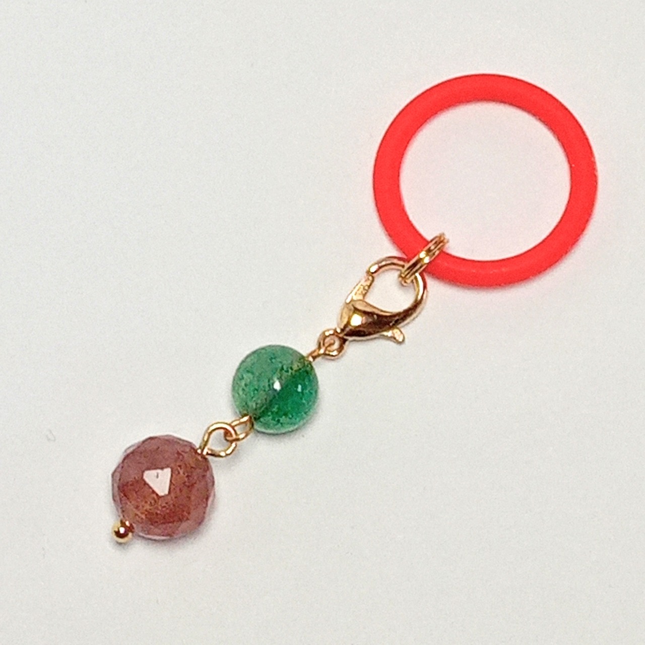 ★紅雨★アンブレラマーカー ペットボトルマーカー 傘 杖 目印 プレゼント ハンドメイド 手作り 贈り物 転倒防止 紛失防止 天然石 パワーストーン チャーム グリーン 緑 レッド 赤 ピンク