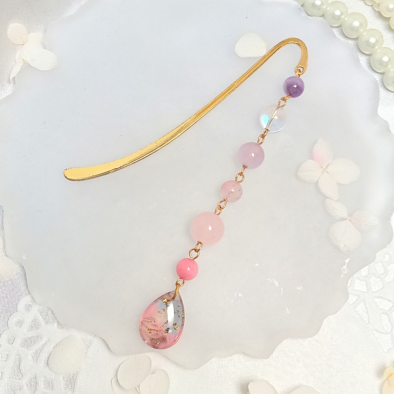 ★オオマシコ★ブックマーカー かんざし 帯飾り インテリア小物 パール ハンドメイド 手作り パワーストーン 天然石 アクセサリー プレゼント 贈り物 レッド 赤 ピンク パープル 紫