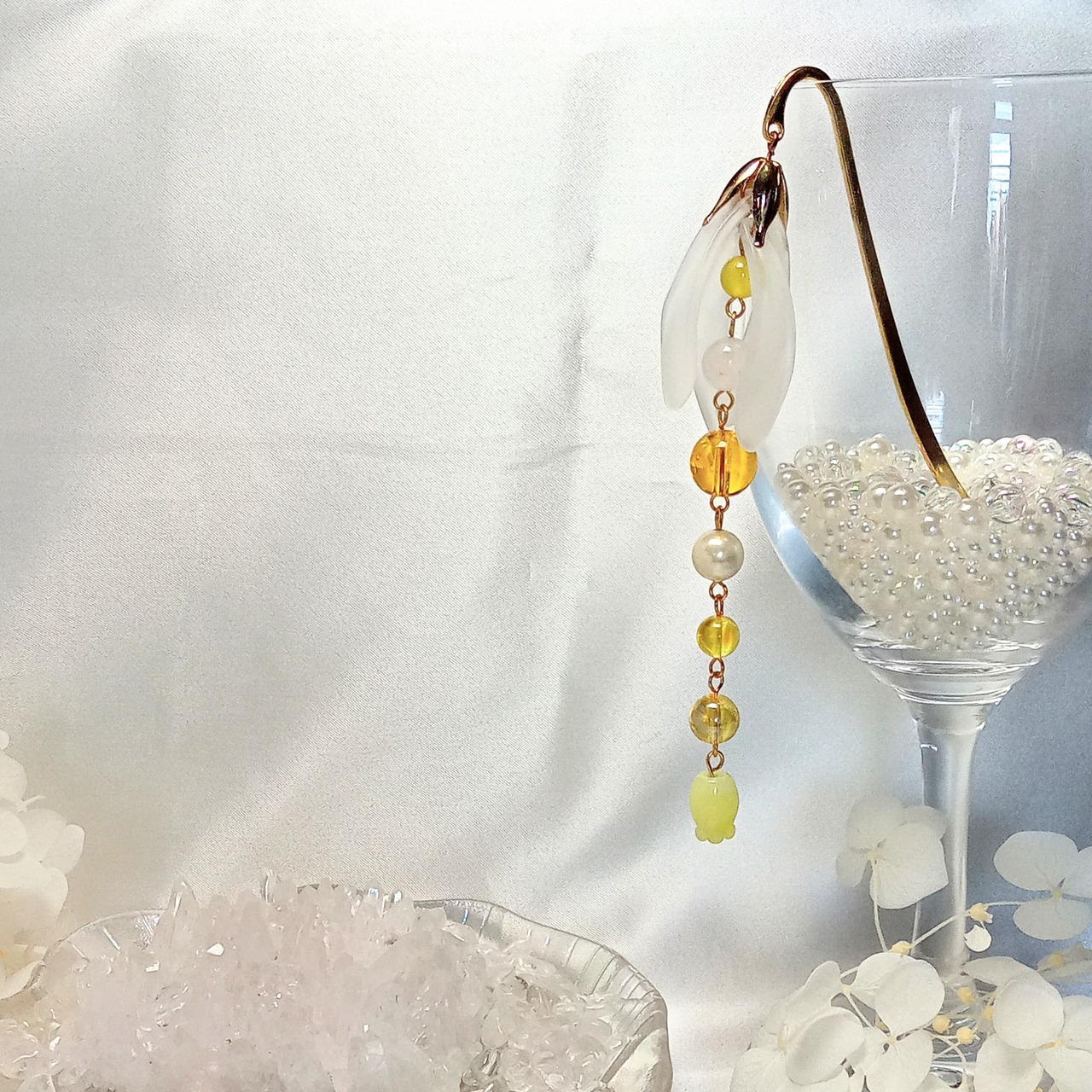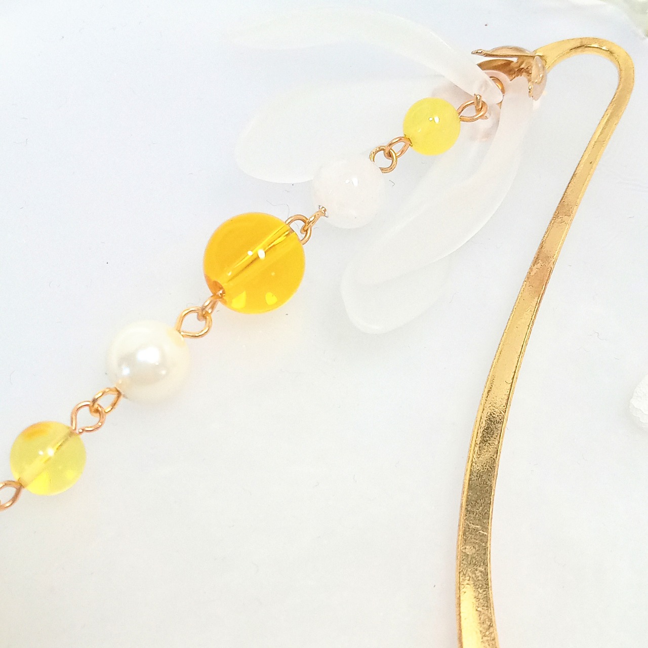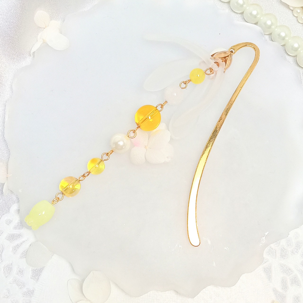 ★カナリア★ブックマーカー かんざし 帯飾り インテリア小物 花 フラワー ハンドメイド 手作り プレゼント 可愛い おしゃれ パワーストーン 着物 浴衣 イエロー 黄色