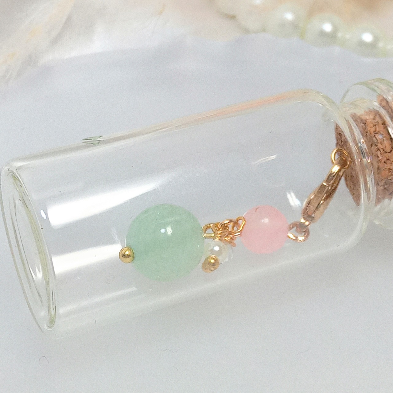 ~小さな宝石箱~ 小瓶ちゃん チャーム ストラップ インテリア小物 天然石 パワーストーン 天然石チャーム パワーストーンチャーム 可愛い おしゃれ 緑 グリーン ピンク