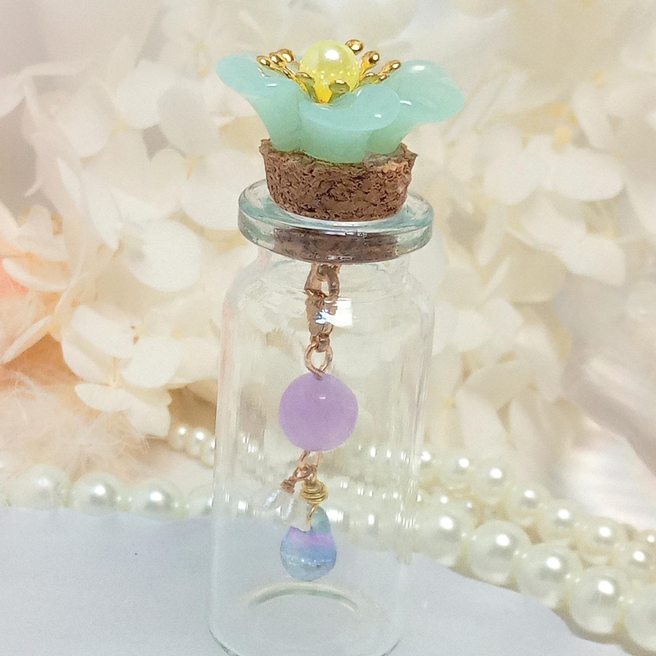 ~小さな宝石箱~ 小瓶ちゃん チャーム ストラップ インテリア小物 天然石 パワーストーン 天然石チャーム パワーストーンチャーム 可愛い かわいい おしゃれ ハンドメイド ハンドメイドチャーム 手作り 花 雫