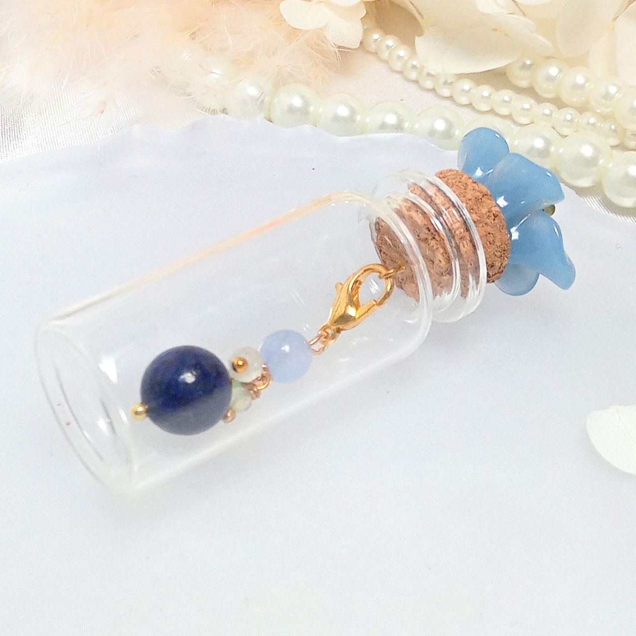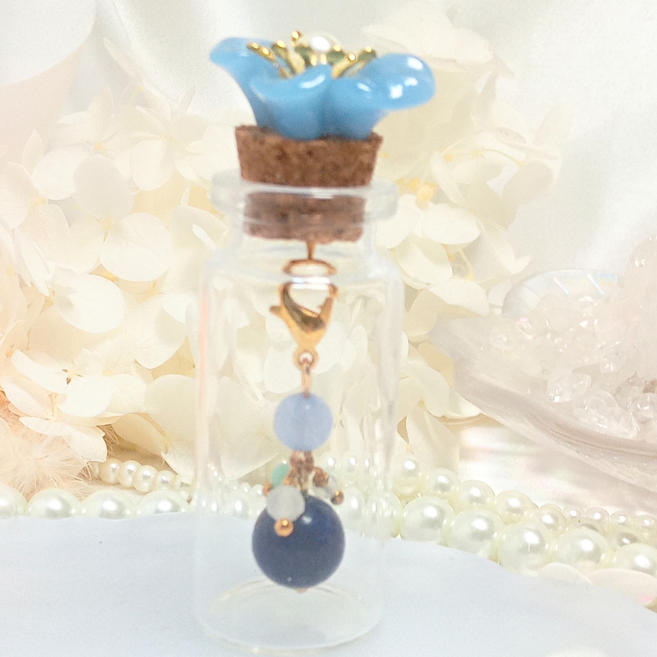 ~小さな宝石箱~ 小瓶ちゃん チャーム ストラップ インテリア小物 天然石 パワーストーン 天然石チャーム パワーストーンチャーム 可愛い かわいい おしゃれ ハンドメイド ハンドメイドチャーム 手作り 花 青