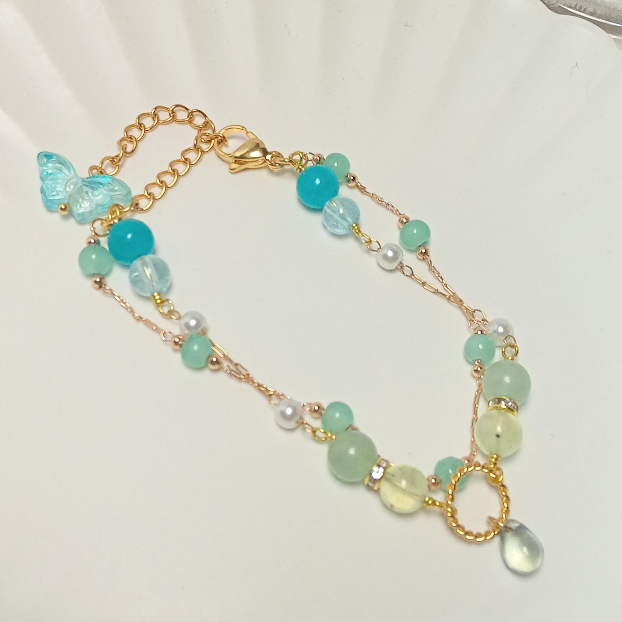 ★オンライン限定デザイン★2連チェーンブレスレット 天然石ブレスレット 可愛い 華奢 綺麗 可愛い おしゃれ プレゼント パワーストーン ブルー グリーン 蝶