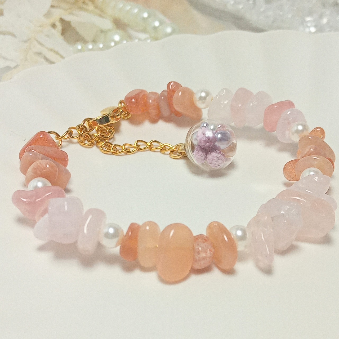 さざれブレスレット 重ね付け 天然石ブレスレット パワーストーン 可愛い おしゃれ 繊細 華奢プレゼント 贈り物 手作り ハンドメイド オレンジ ピンク