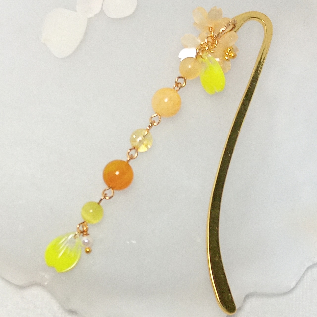 桜ブックマーカー かんざし 帯飾り インテリア小物 パール ハンドメイド 手作り パワーストーン 天然石 アクセサリー プレゼント 贈り物 黄色 イエロー