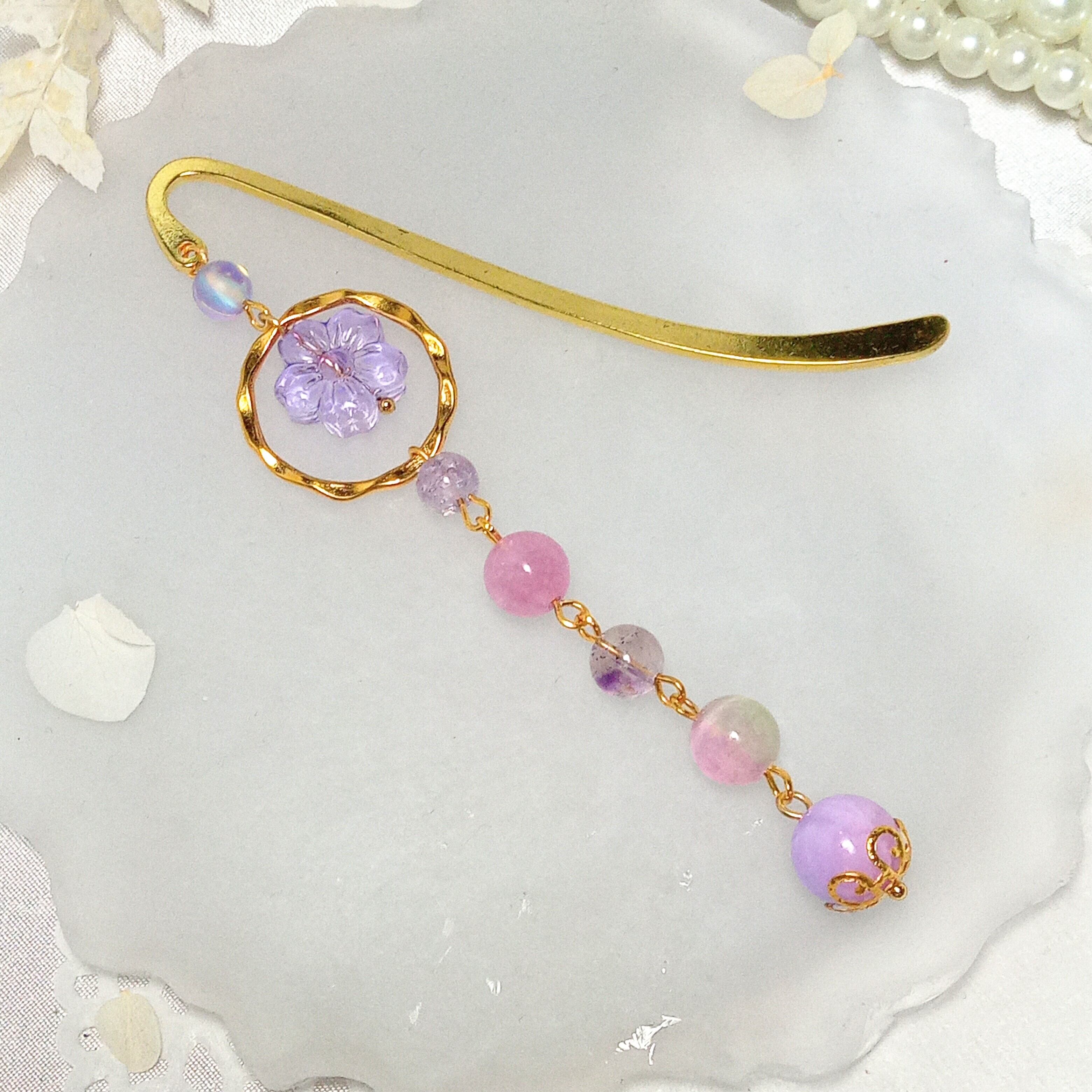 桜ブックマーカー かんざし 帯飾り インテリア小物 パール ハンドメイド 手作り パワーストーン 天然石 アクセサリー プレゼント 贈り物 紫 パープル