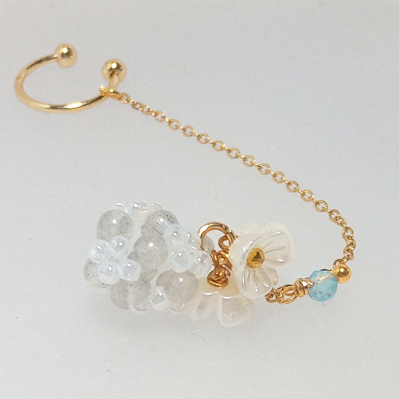 ★片耳★イヤーカフ 天然石 パワーストーン アクセサリー 耳飾り ノンホール イヤカフ レディース 金属アレルギー対応 ロング 花 フラワー グレー 灰