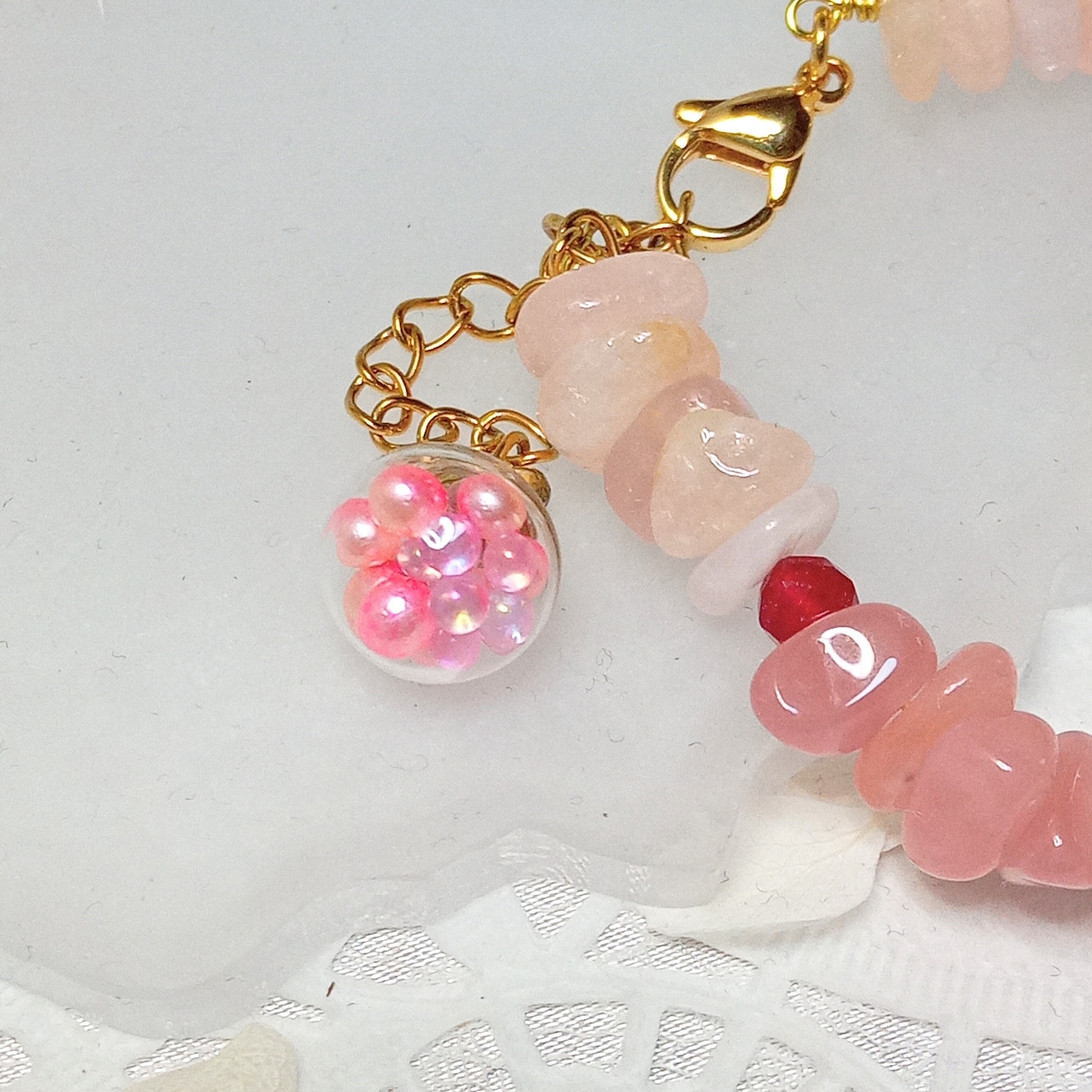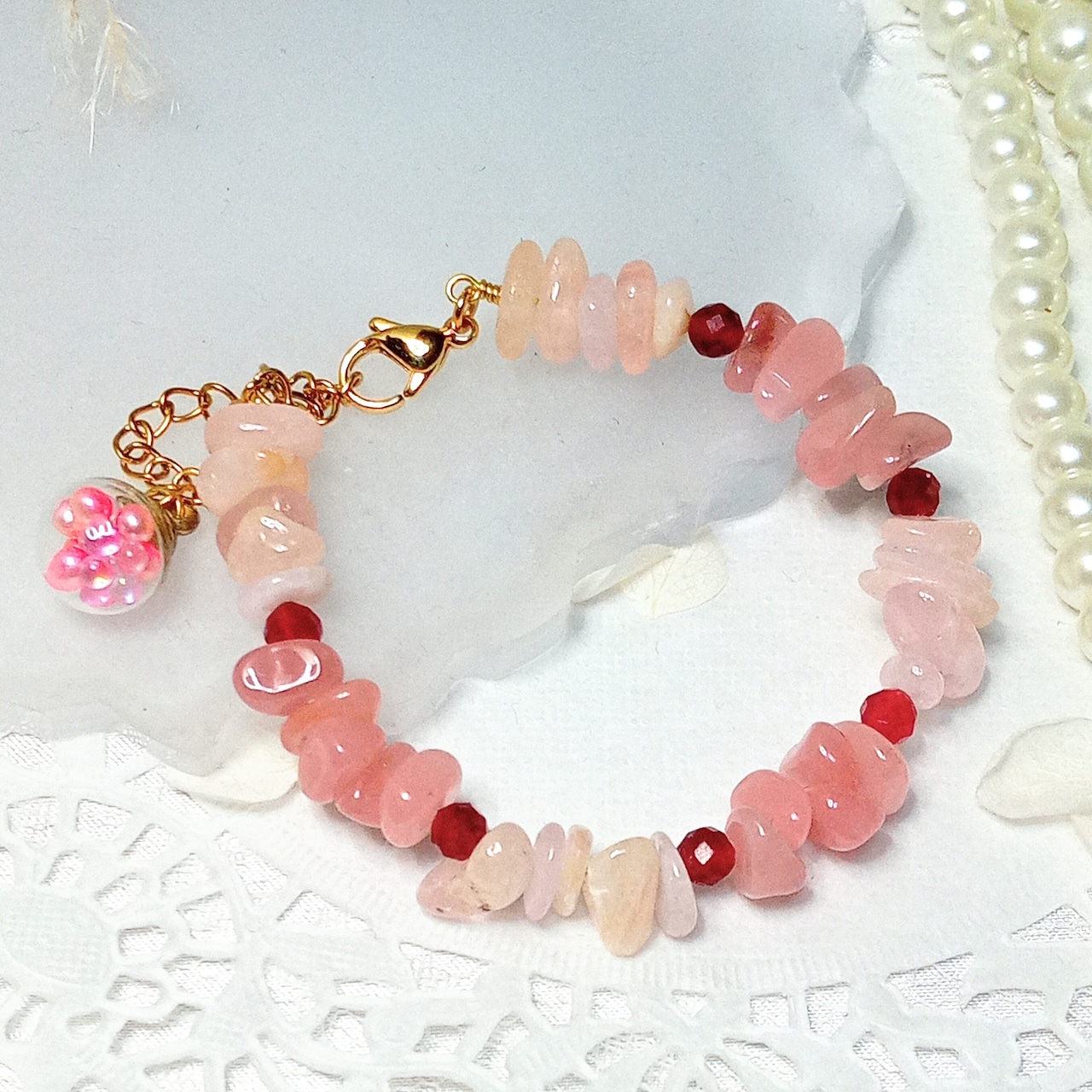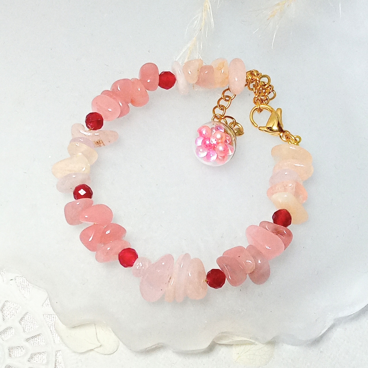 さざれブレスレット 重ね付け 天然石ブレスレット パワーストーン 可愛い おしゃれ 繊細 華奢プレゼント 贈り物 手作り ハンドメイド ピンク レッド