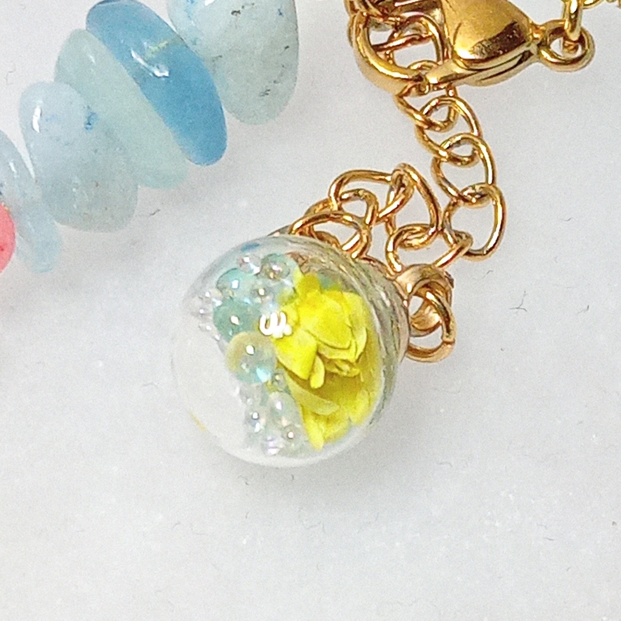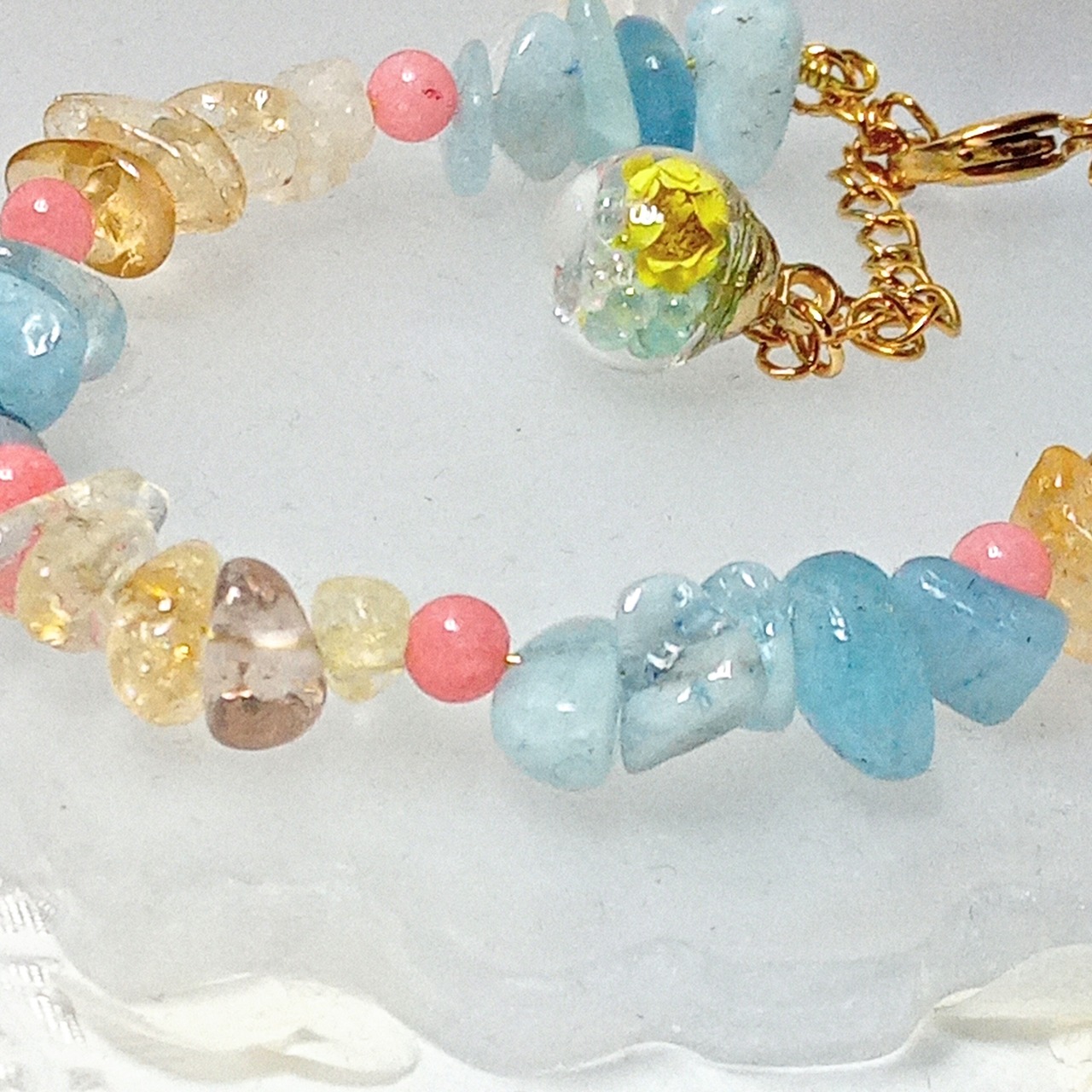 さざれブレスレット 重ね付け 天然石ブレスレット パワーストーン 可愛い おしゃれ 繊細 華奢プレゼント 贈り物 手作り ハンドメイド ピンク 水色 アクア イエロー 黄