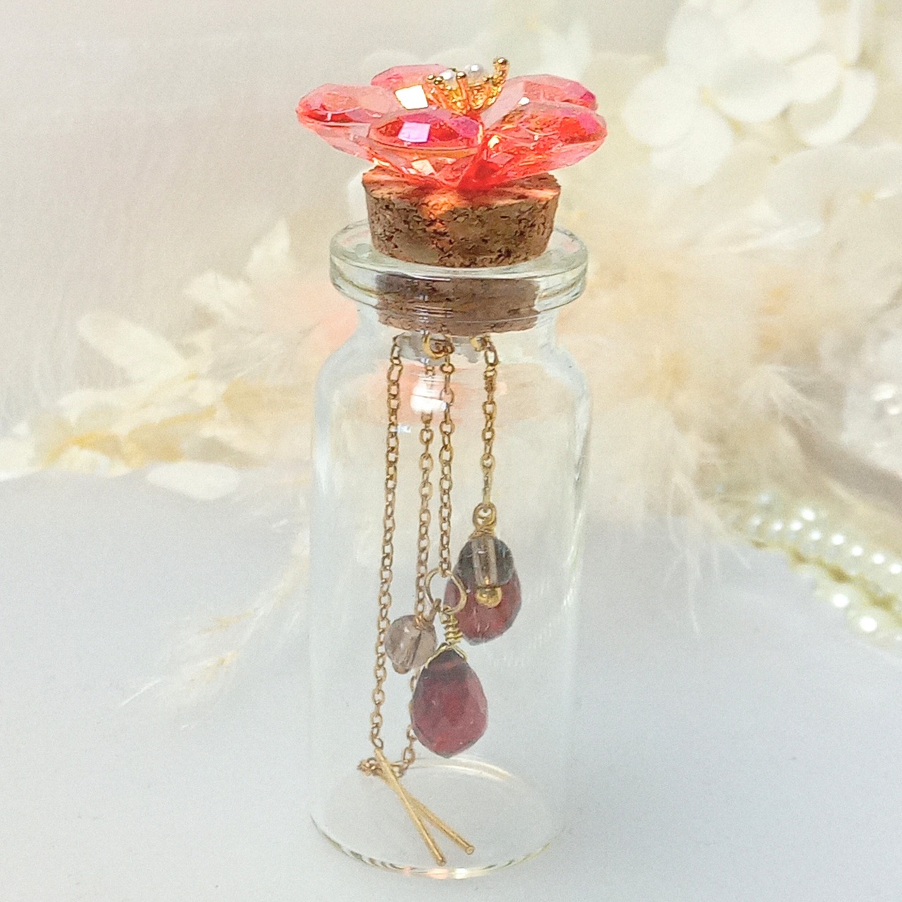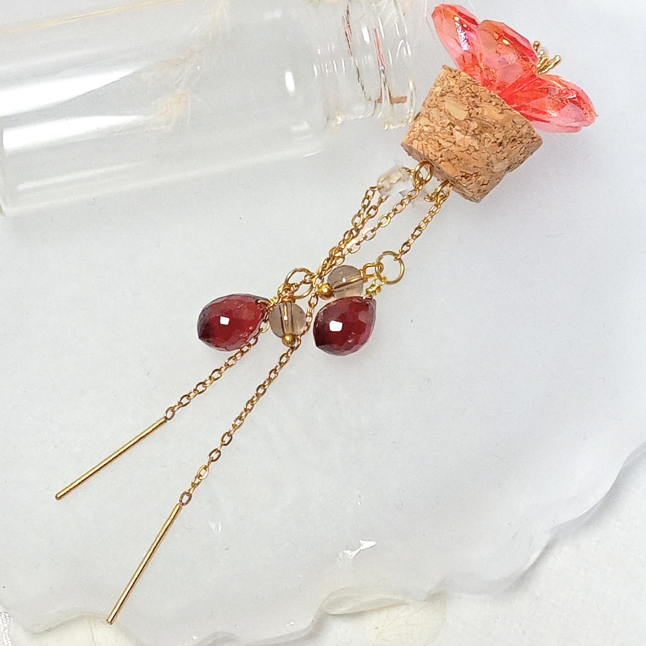 ~小さな宝石箱~ 小瓶ちゃん 天然石ピアス 天然石イヤリング パワーストーン 可愛い おしゃれ 小ぶり 赤