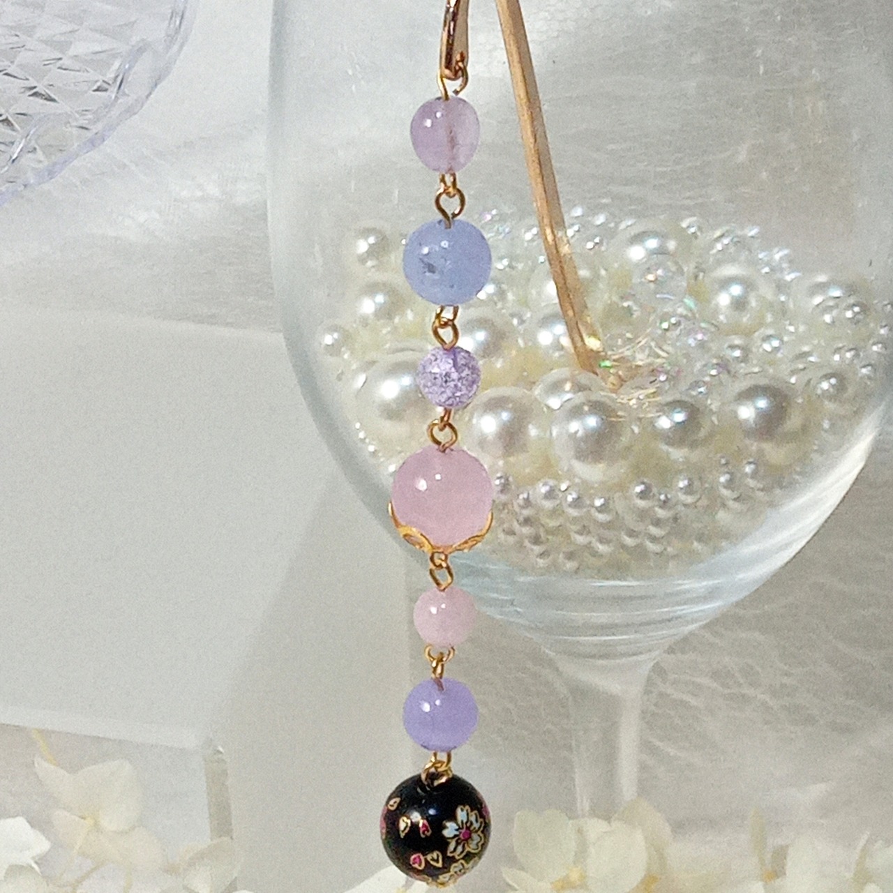 桜 ブックマーカー かんざし 帯飾り インテリア小物 花 フラワー ハンドメイド 手作り プレゼント 可愛い おしゃれ パワーストーン 着物 浴衣 紫 黒