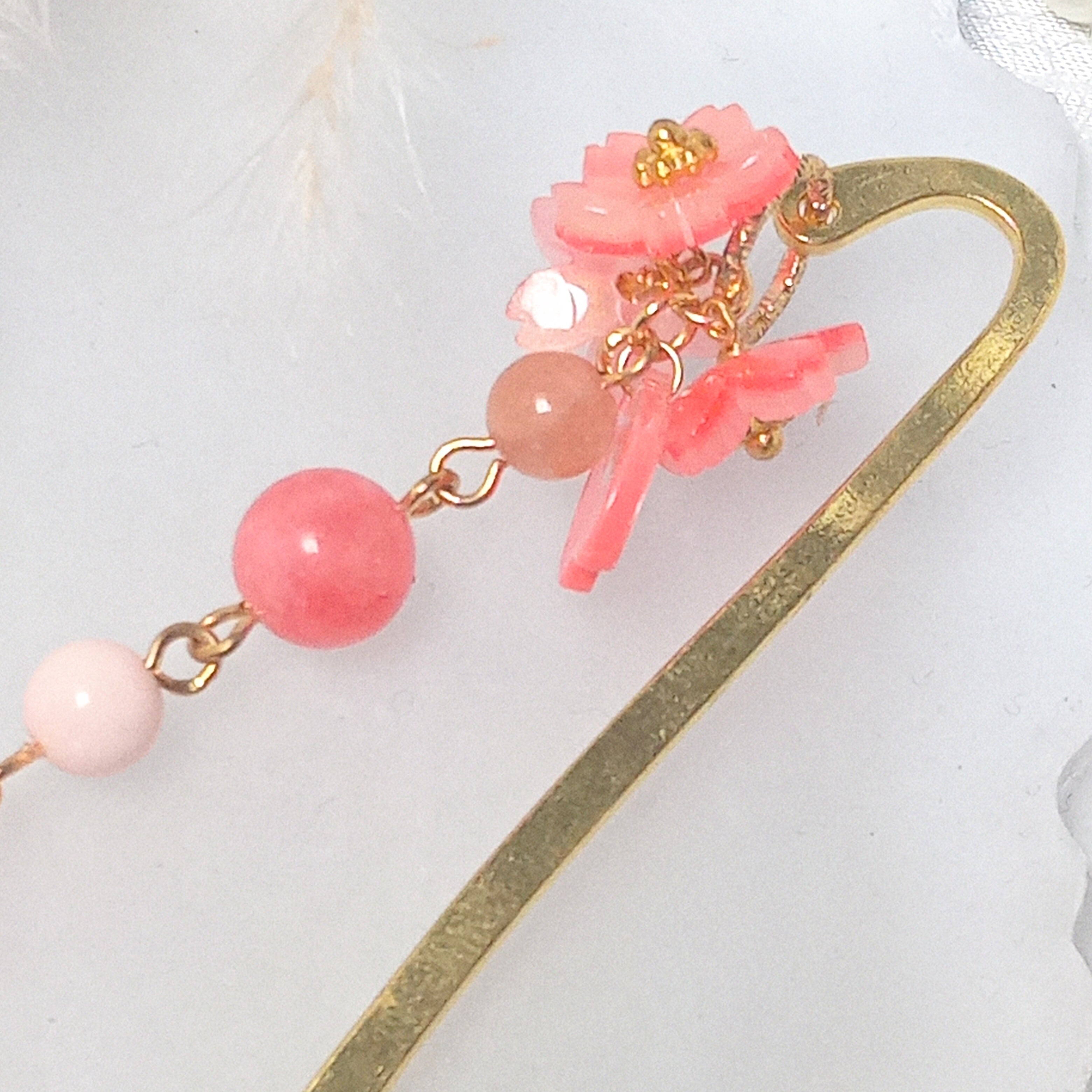 桜 ブックマーカー しおり かんざし 帯飾り インテリア小物 花 フラワー ハンドメイド 手作り プレゼント 可愛い おしゃれ パワーストーン 着物 浴衣 ピンク