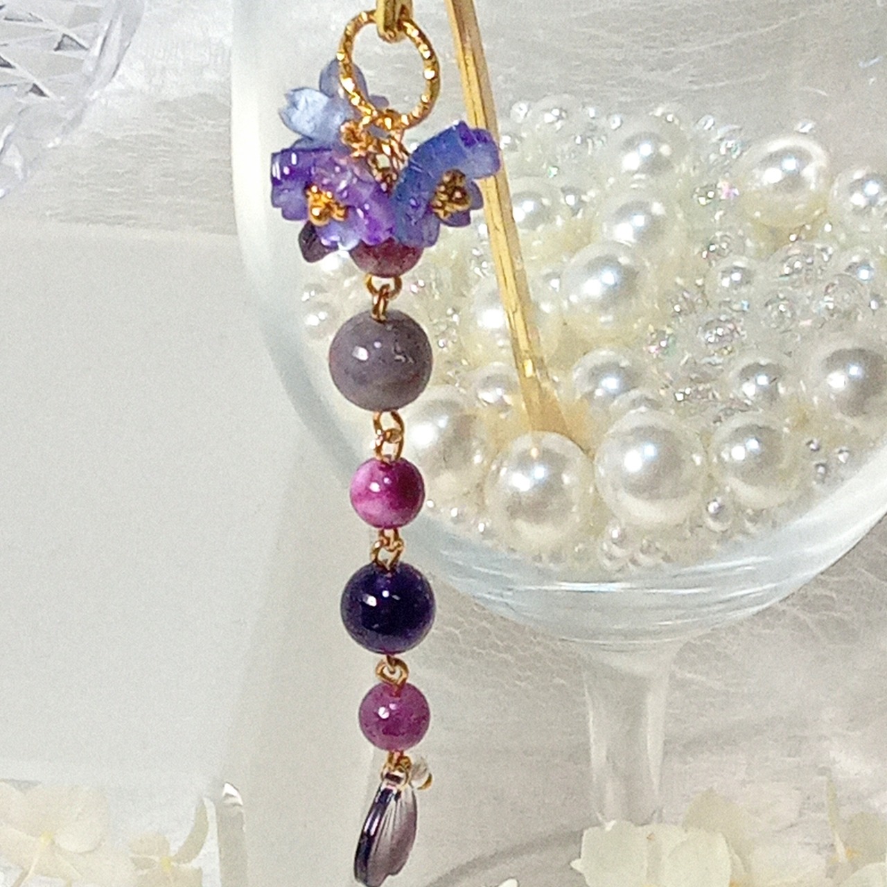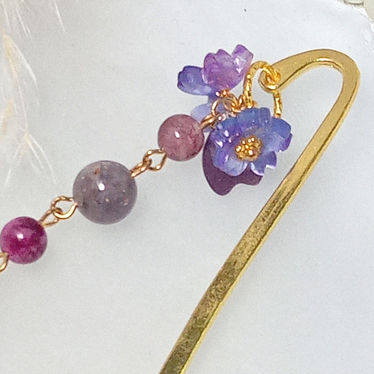 桜 ブックマーカー しおり かんざし 帯飾り インテリア小物 花 フラワー ハンドメイド 手作り プレゼント 可愛い おしゃれ パワーストーン 着物 浴衣 紫