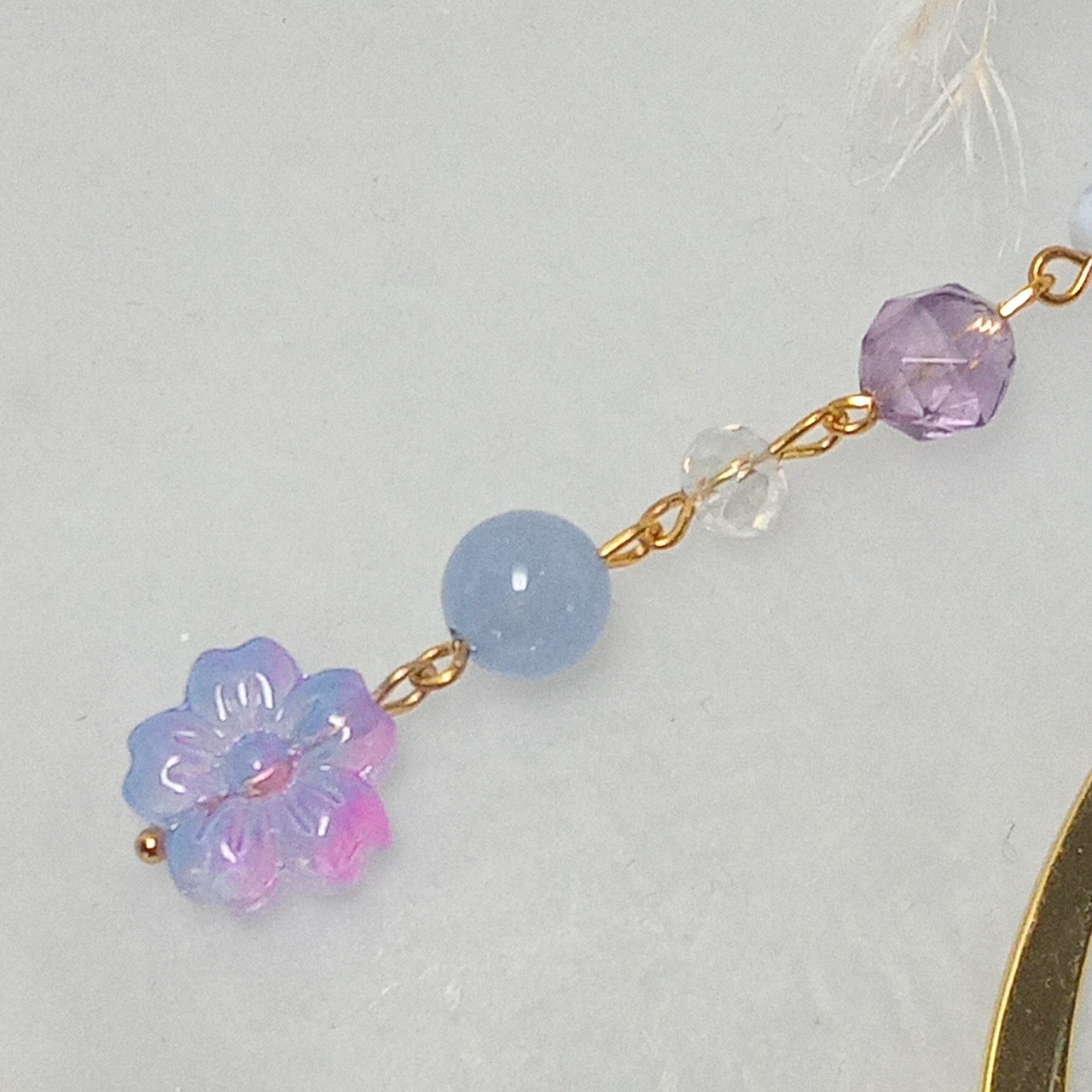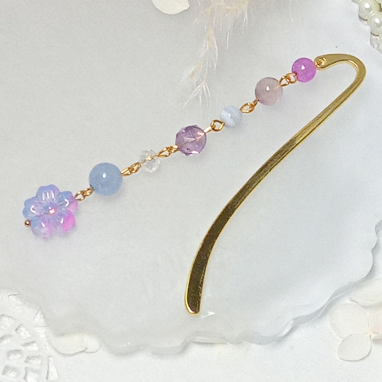 桜 ブックマーカー しおり かんざし 帯飾り インテリア小物 花 フラワー ハンドメイド 手作り プレゼント 可愛い おしゃれ パワーストーン 着物 浴衣 青 紫