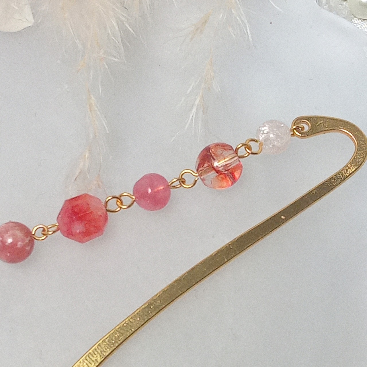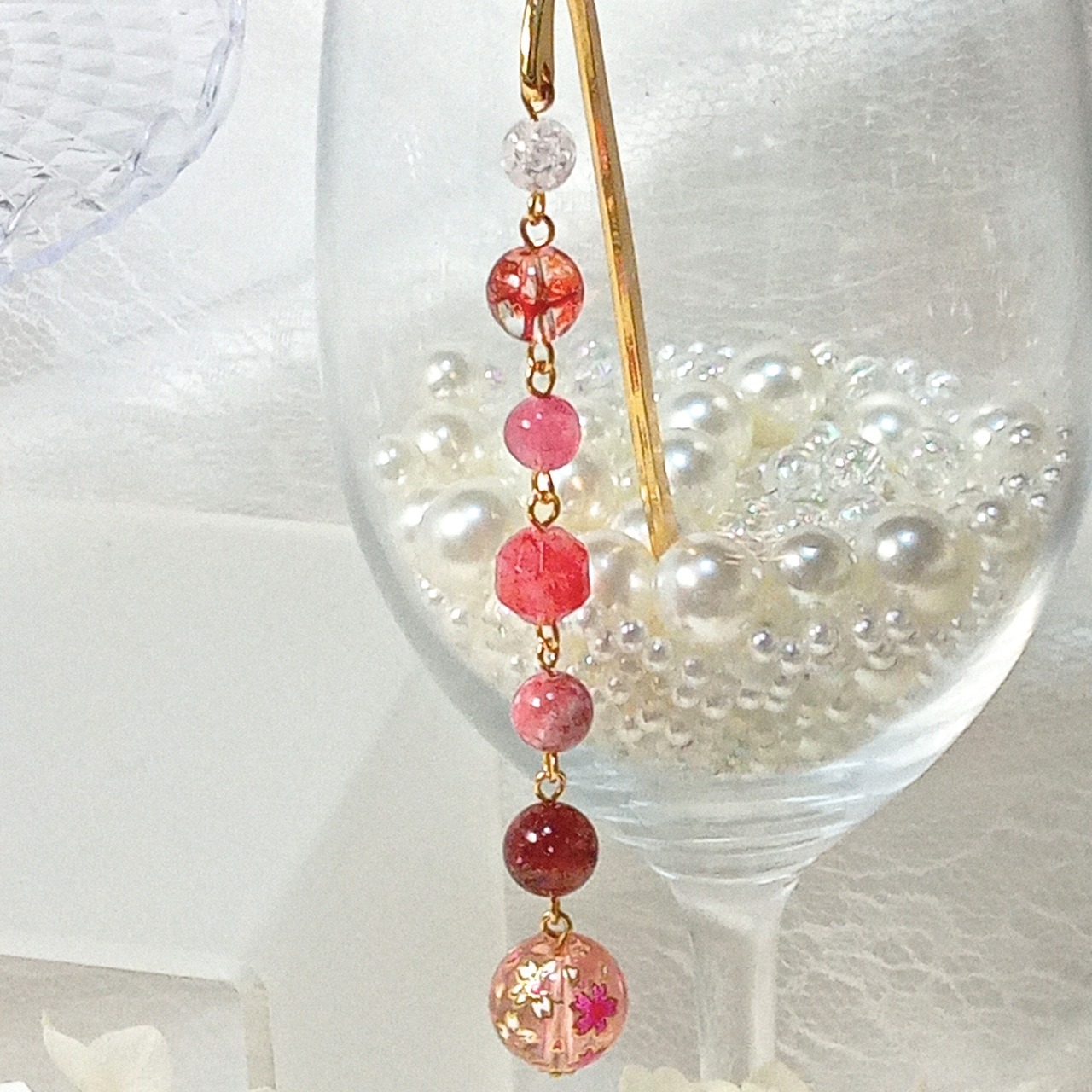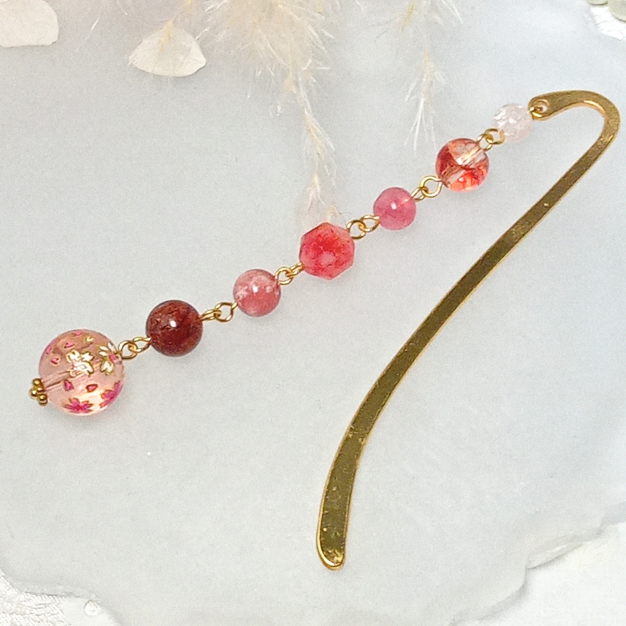 桜 ブックマーカー しおり かんざし 帯飾り インテリア小物 花 フラワー ハンドメイド 手作り プレゼント 可愛い おしゃれ パワーストーン 着物 浴衣 ピンク 赤