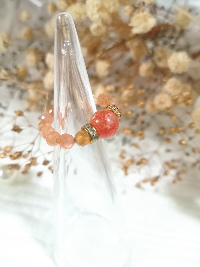 カスタムイヤーカフ&リング 天然石 パワーストーン 指輪 重ね付け シンプル フリーサイズ アレルギー対応 プレゼント 贈り物 ゴールド オレンジ