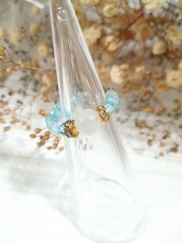 カスタムイヤーカフ&リング 天然石 パワーストーン 指輪 重ね付け シンプル フリーサイズ アレルギー対応 プレゼント 贈り物 ゴールド ブルー ホワイト